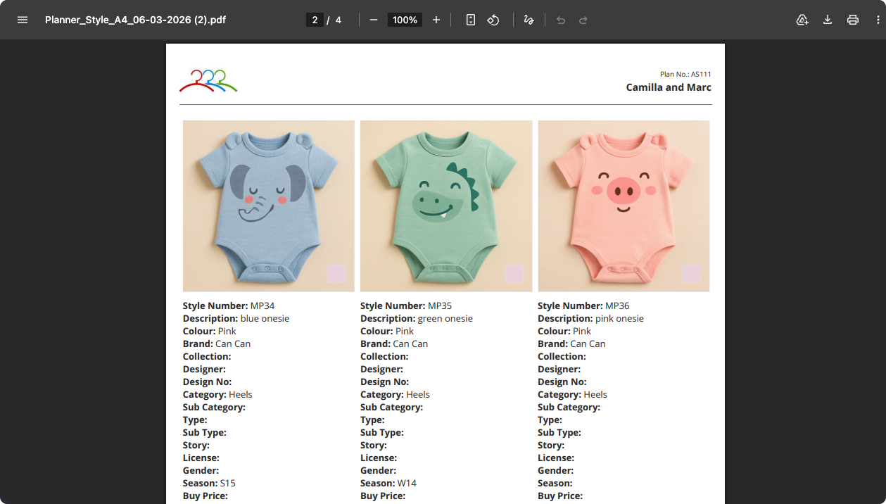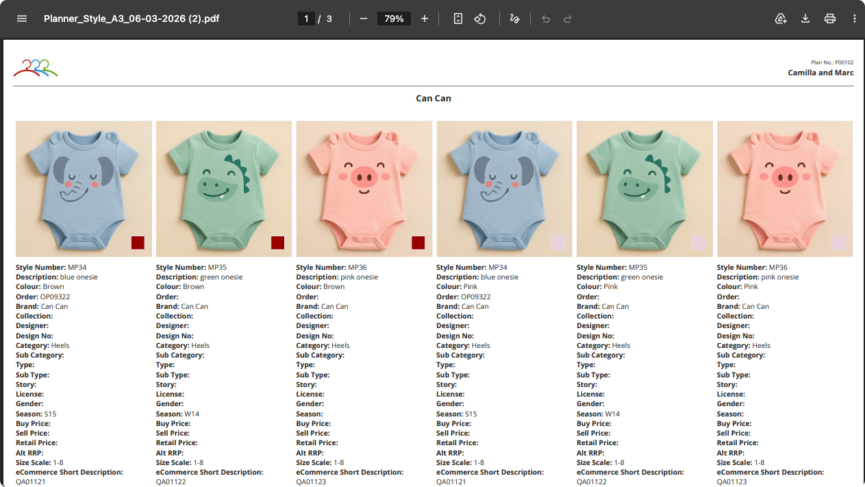 - Each Style is separated by Colour, giving better visibility of colourways within the planning document