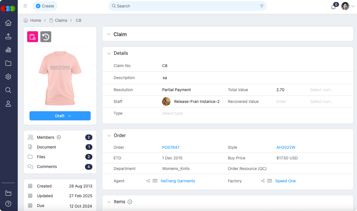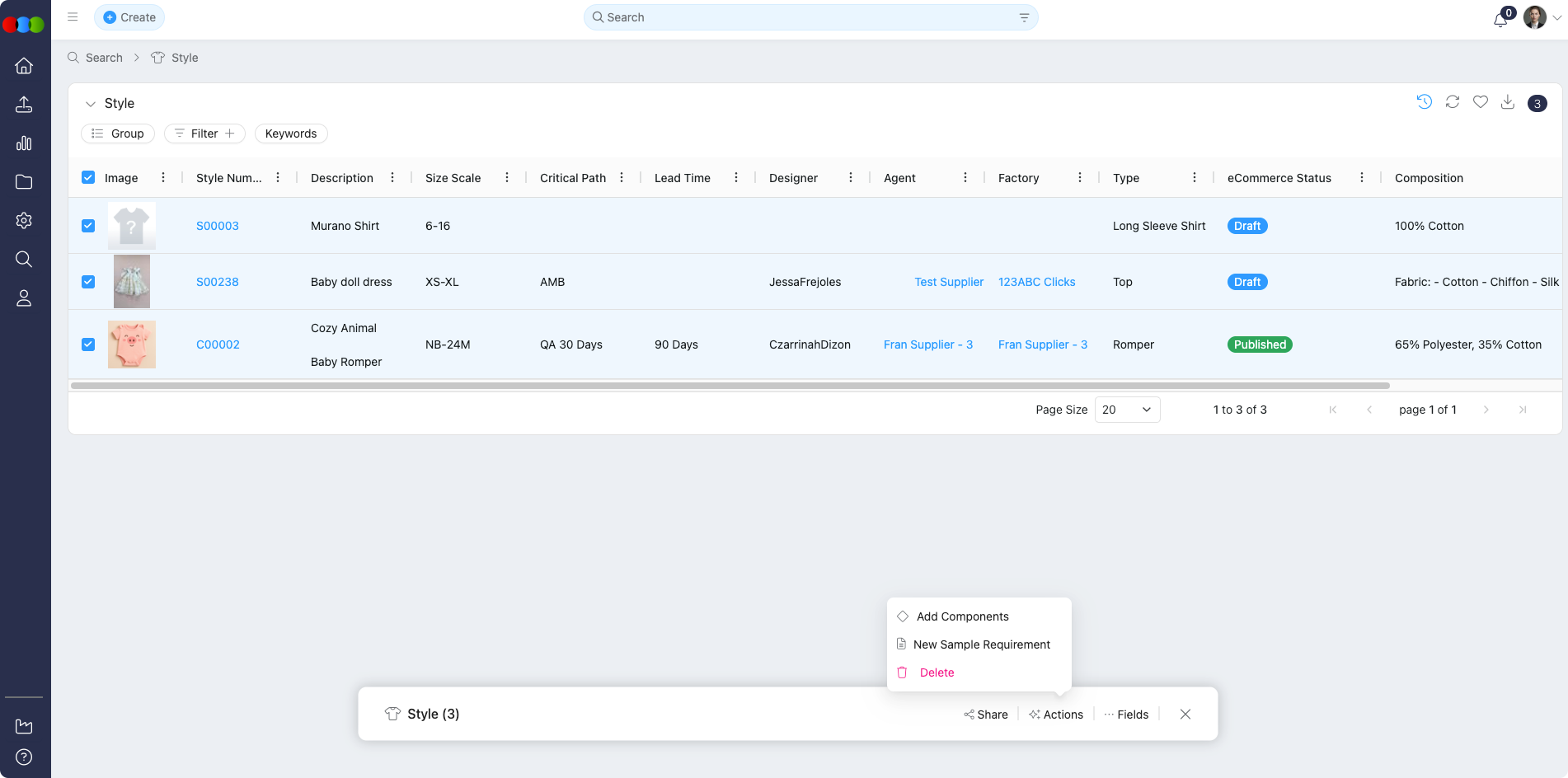 - Results may include linked applications like Orders, Claims, Shipments, etc. wherever the Style is used.