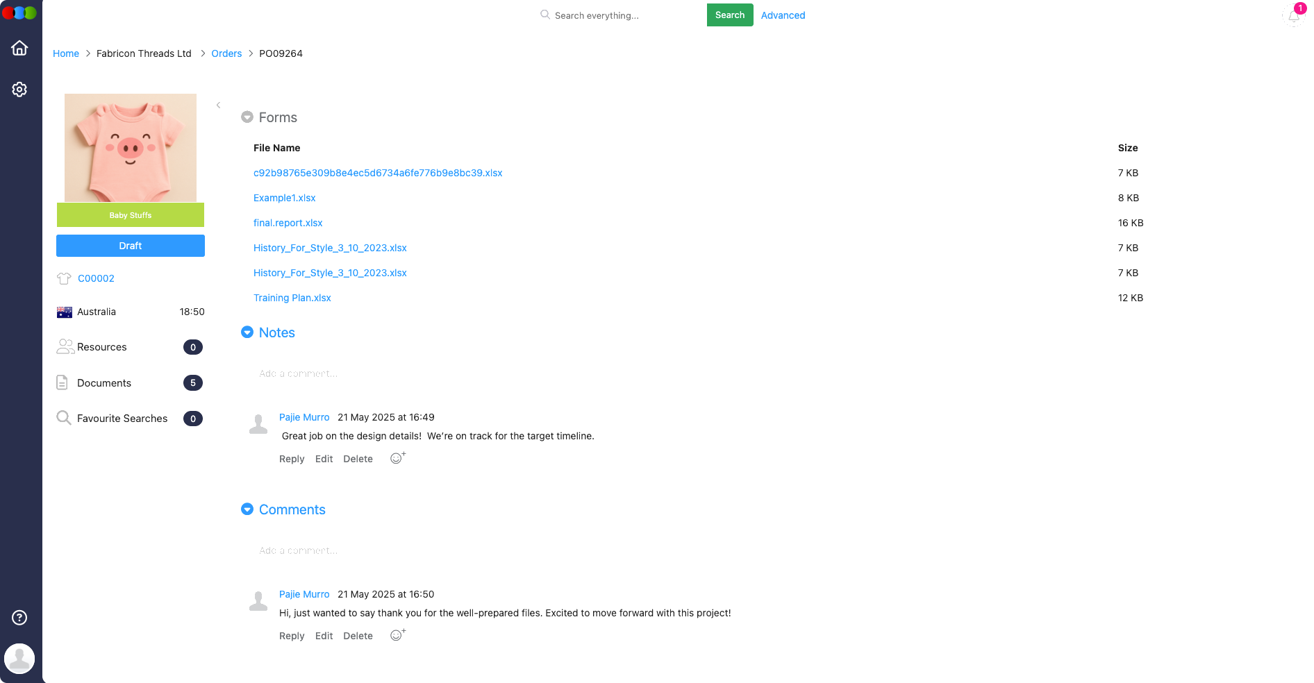 - Clicking on the Orders link in the breadcrumb will now display all relevant search results associated with the selected Style Number.