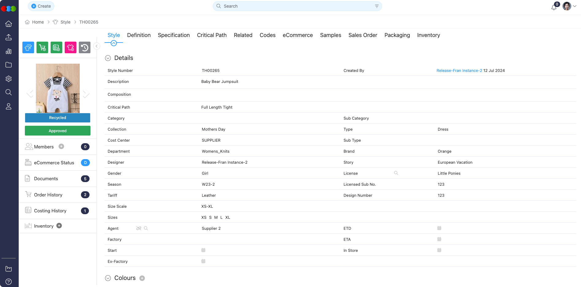 - Clicking the Style Number in the Order Breadcrumb (Order tab) now works without error.