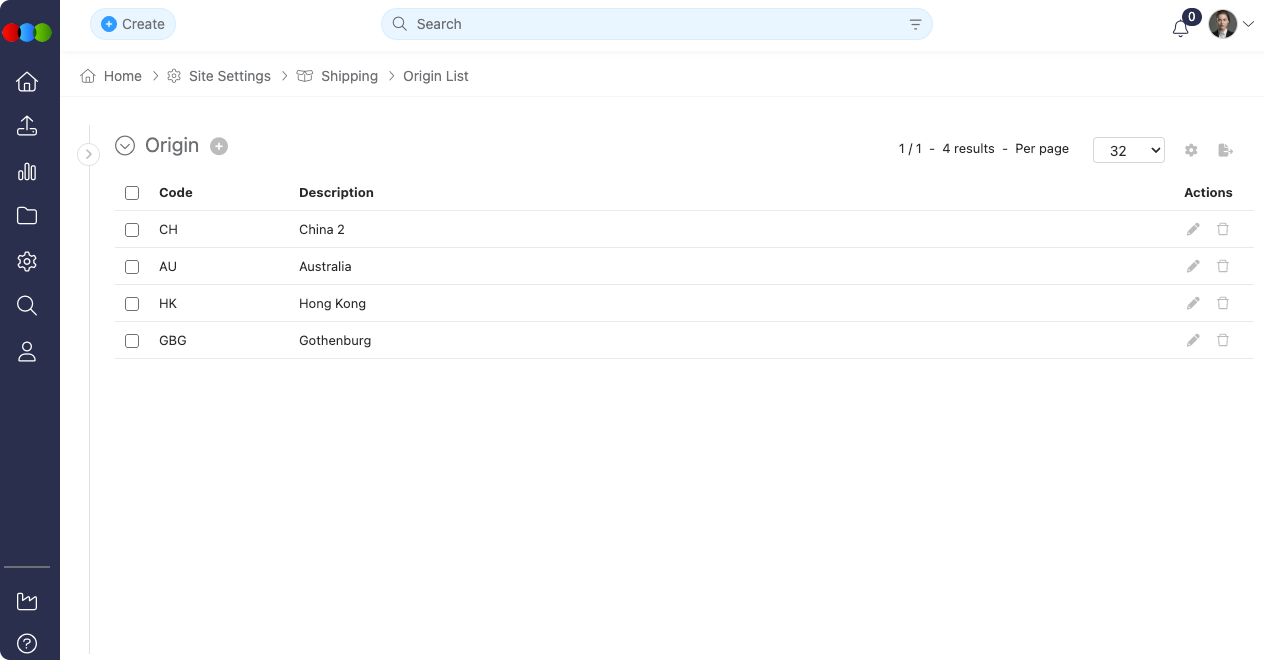 Site Settings Breadcrumb UI