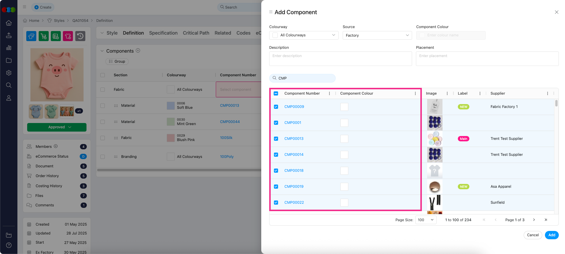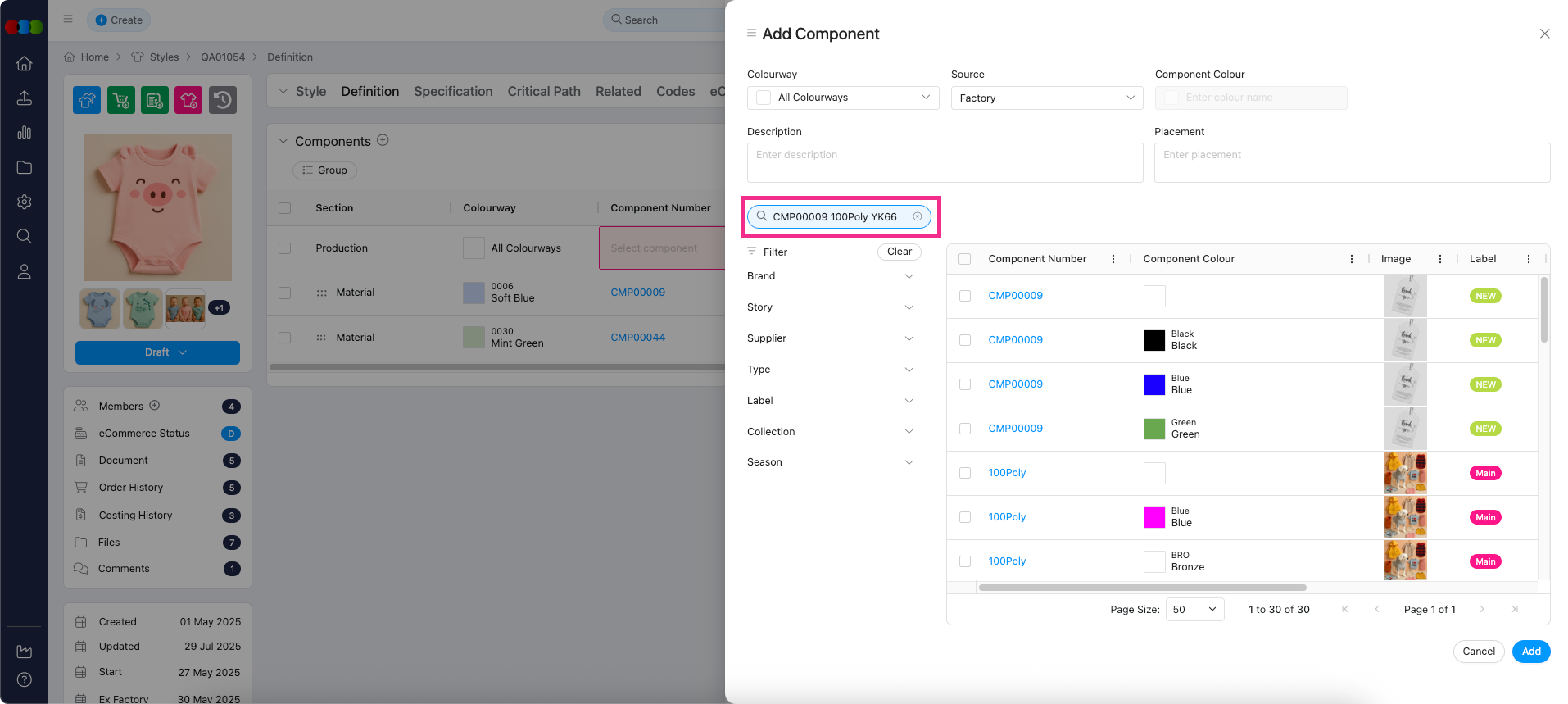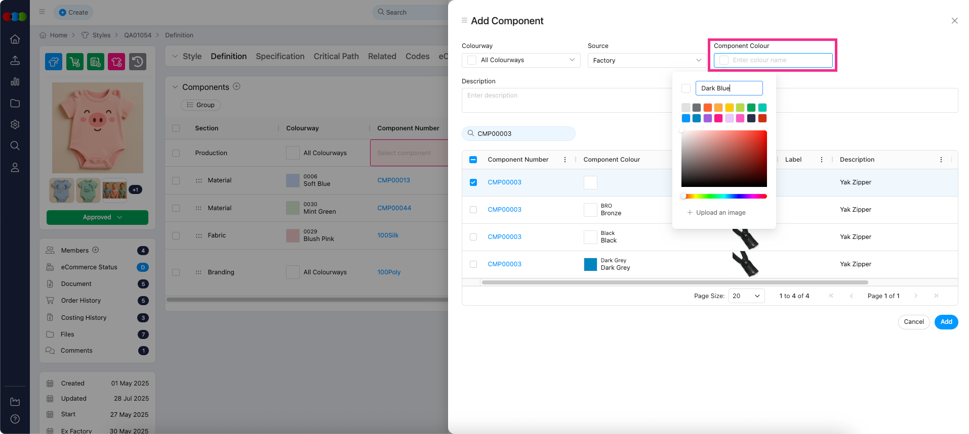 Add Component Pop-up > Component Colours