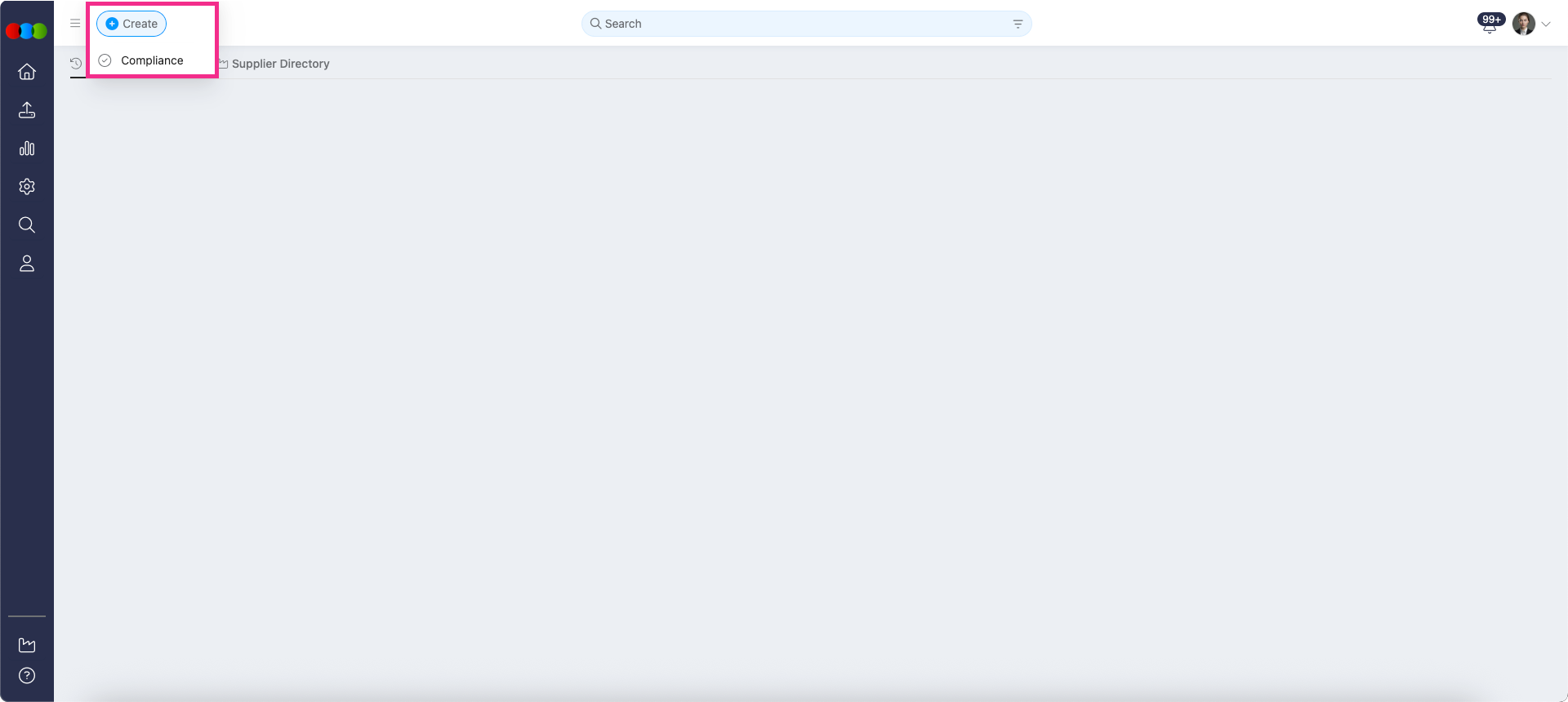 - Correct "Create" Options: We fixed a bug where users with permission to create a Compliance record would see the wrong options in the "Create" menu. This now works as expected.