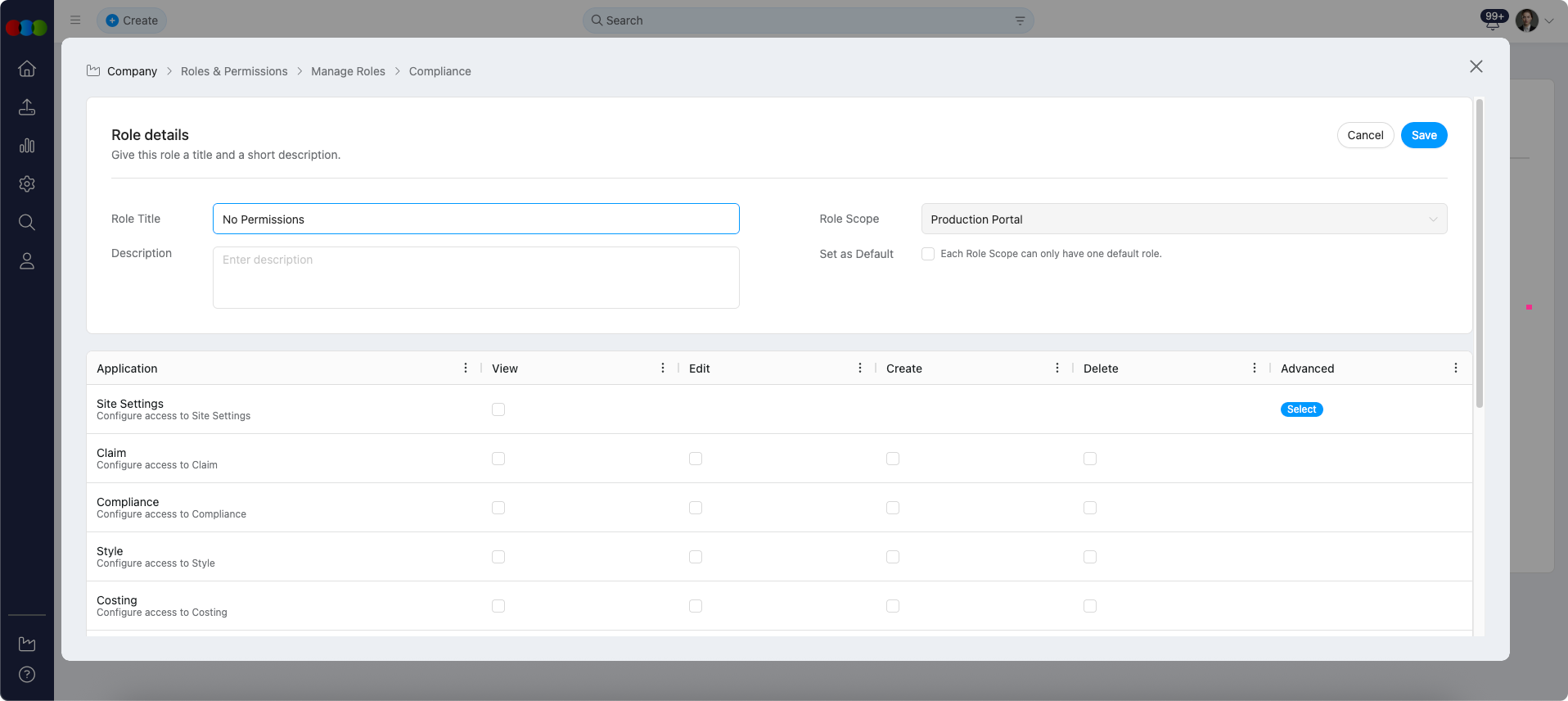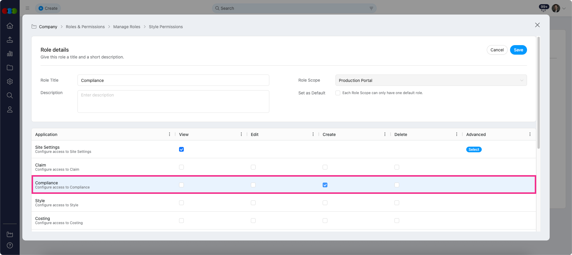 Roles and Permissions > Compliance > Create