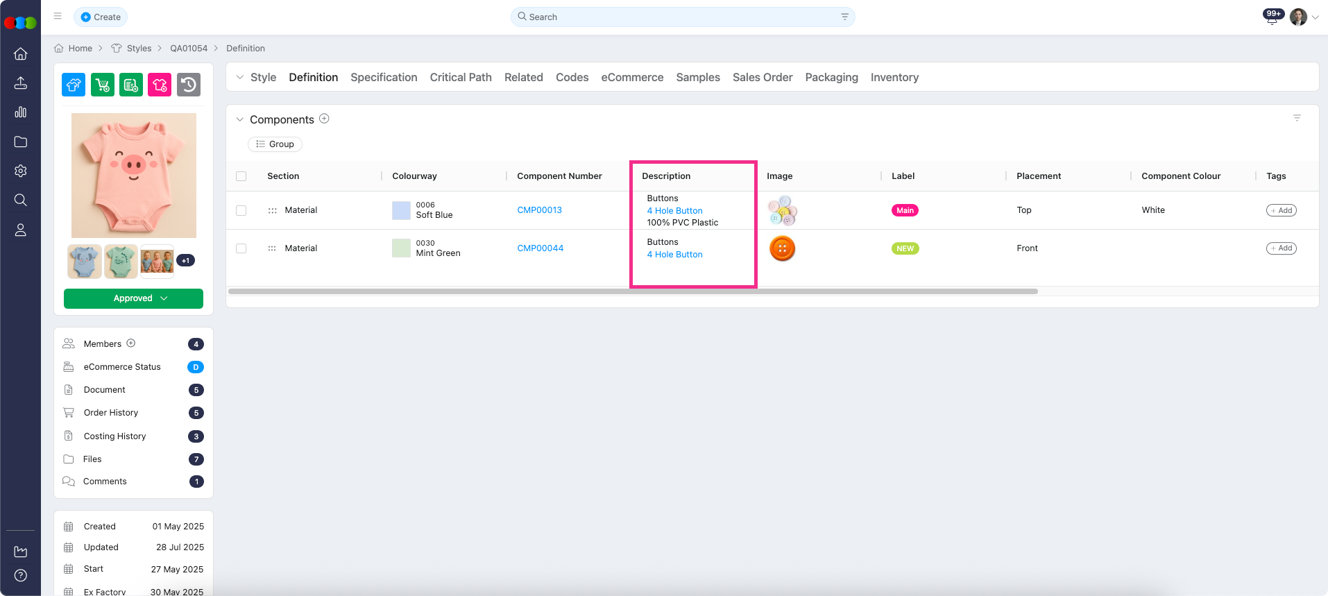 We've made several fixes to make managing components in the Style > Definition tab easier and more reliable.