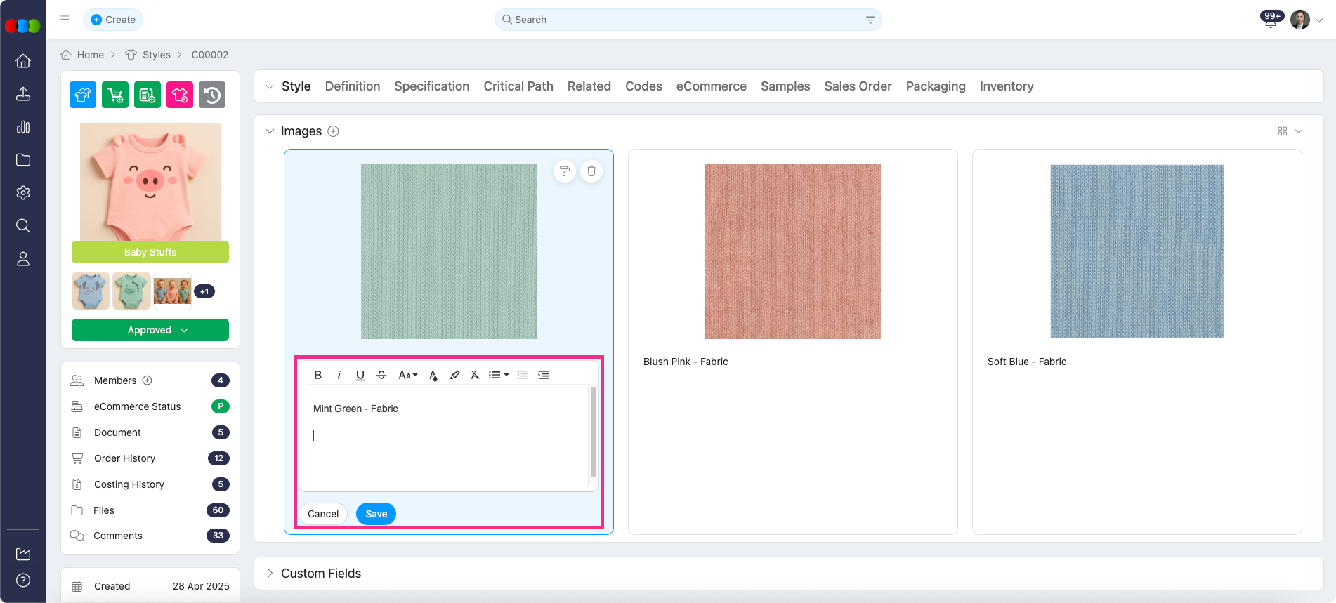 - Style > Specifications (Sketches & Images)