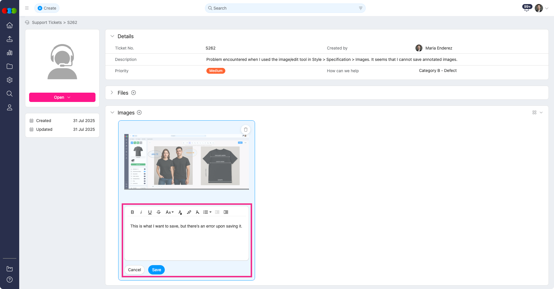 Support Tickets > Images > Comments