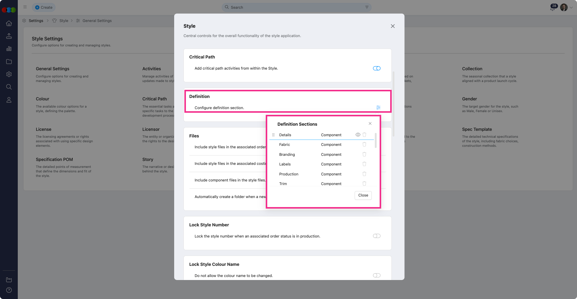 You can now drag the sections to rearrange Definition Sections, and any changes will automatically reflect in the Style > Definition > Section dropdown.
