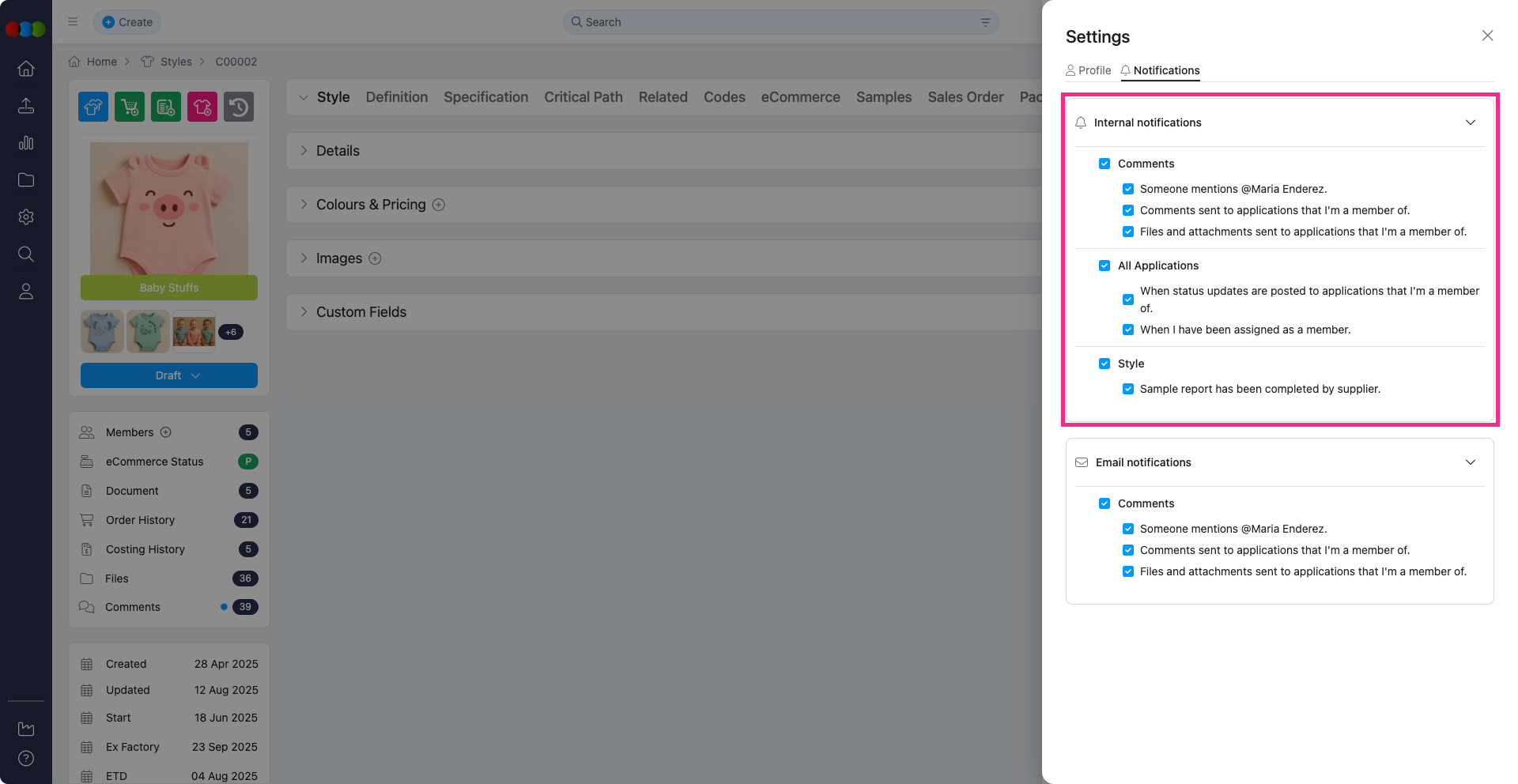 - Supplier Actions (Styles): Get notified when a supplier completes a sample report for a style you're a member of.