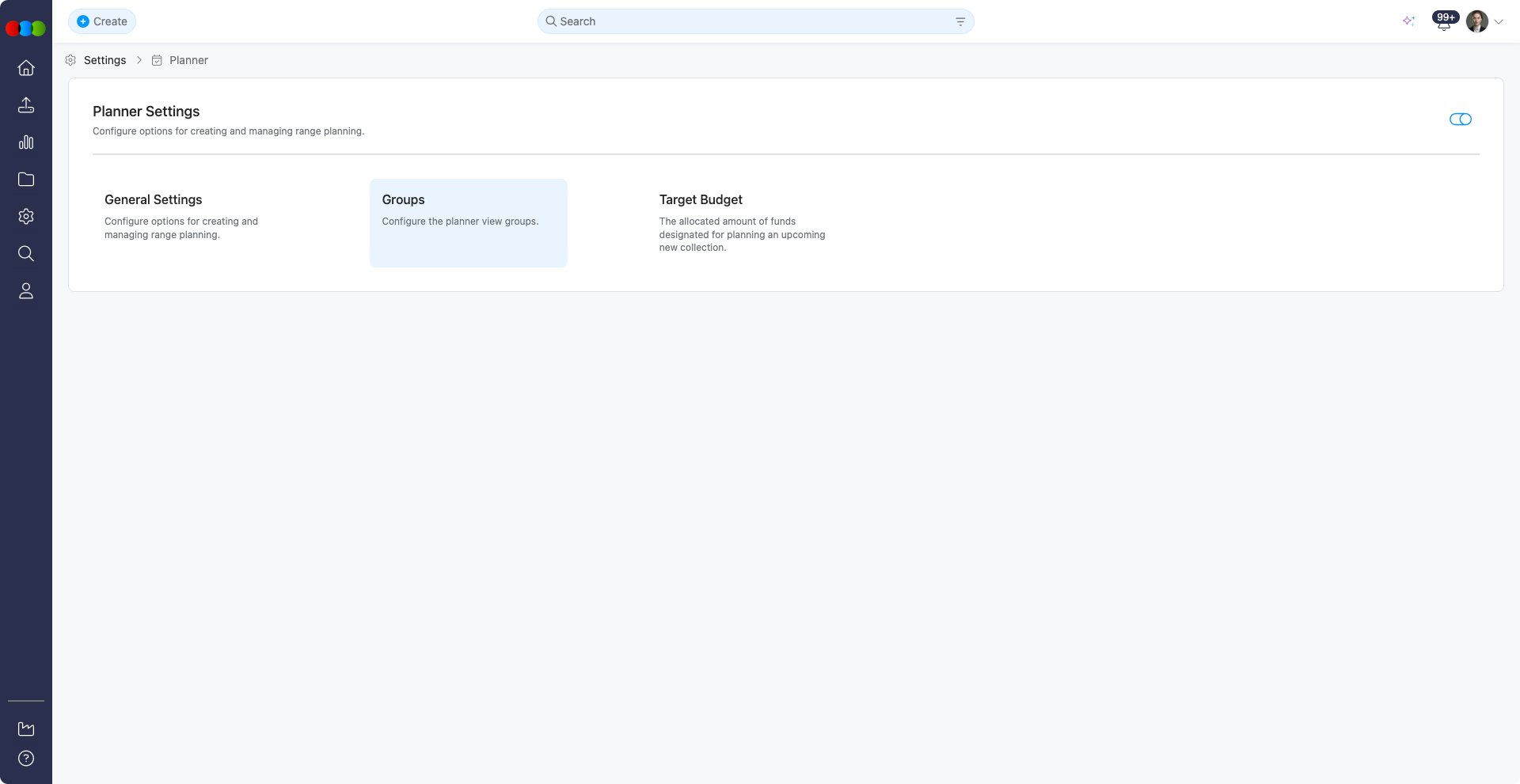 Groups lets you define grouping hierarchy based on a style’s Brand, Category, or Type, which are then displayed in the Planner’s Fixed Group view.