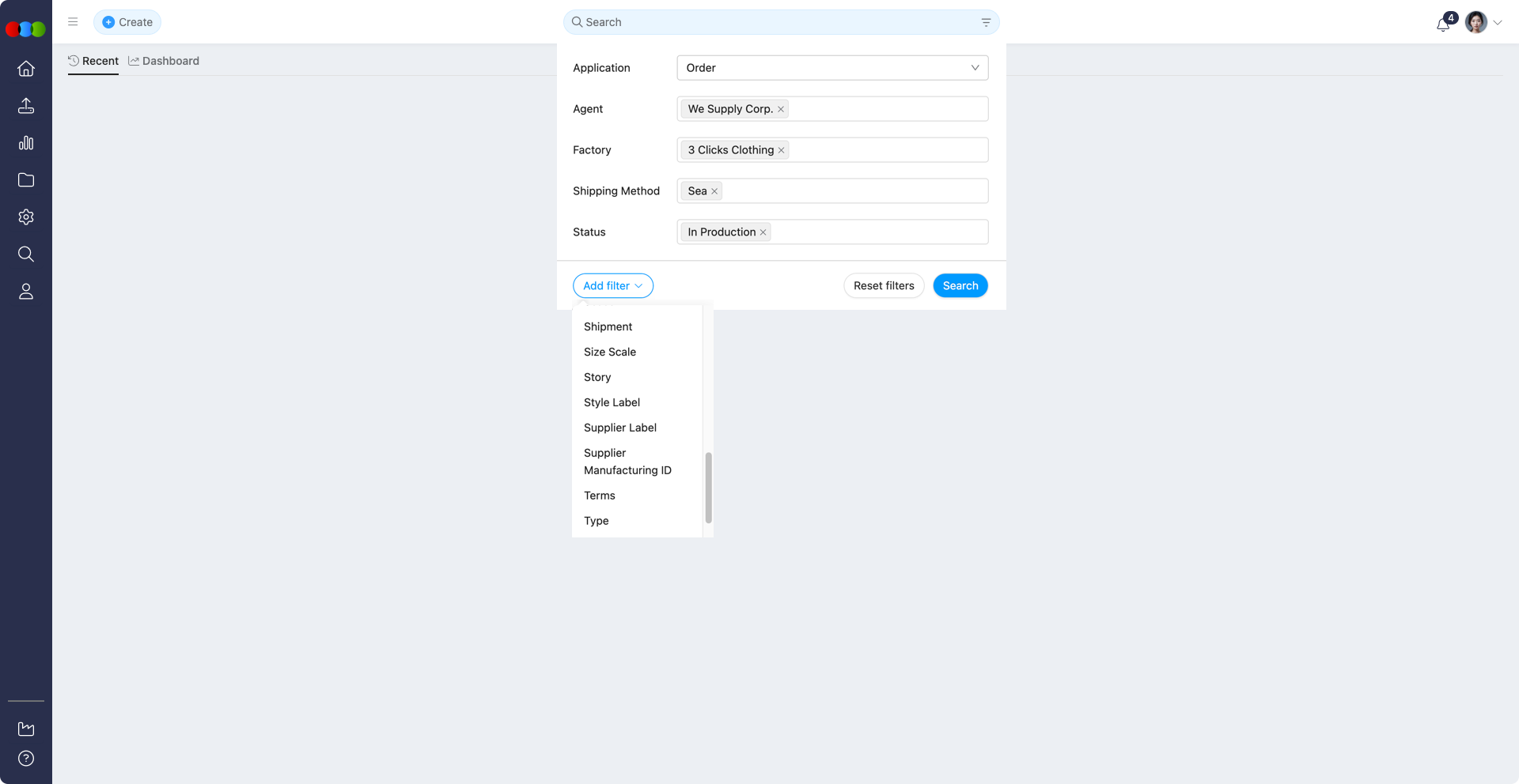 New Shipment Filter in the Advanced Search