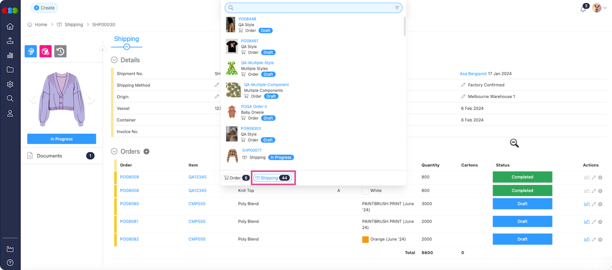 - You can now add a Shipment filter when using Advanced Search in Orders, allowing you to display orders linked to a specific shipment.