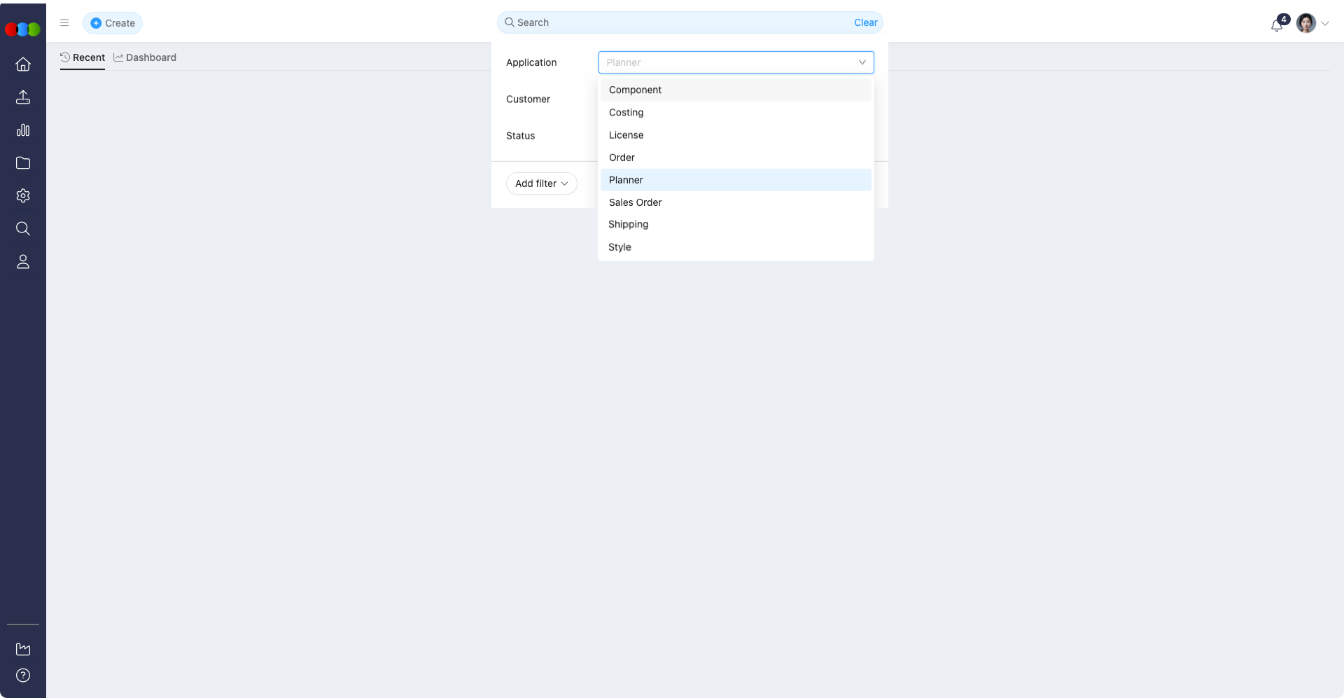 - The “+” icon and “Filter” button are now combined into a single Filter button.