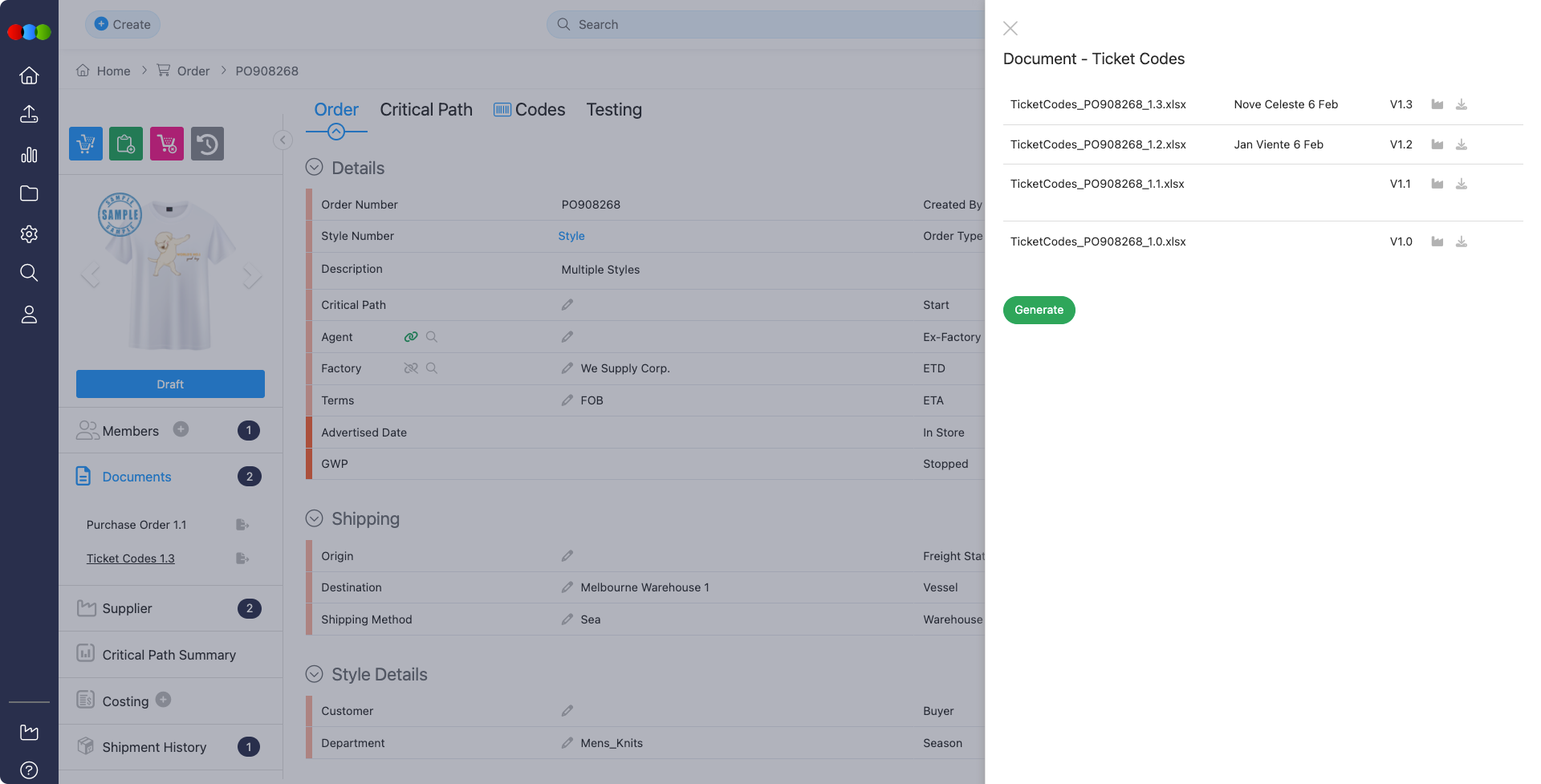 - When generating the ticket code document is enabled in Order Settings, the document file name was displayed incorrectly for orders with multiple styles.