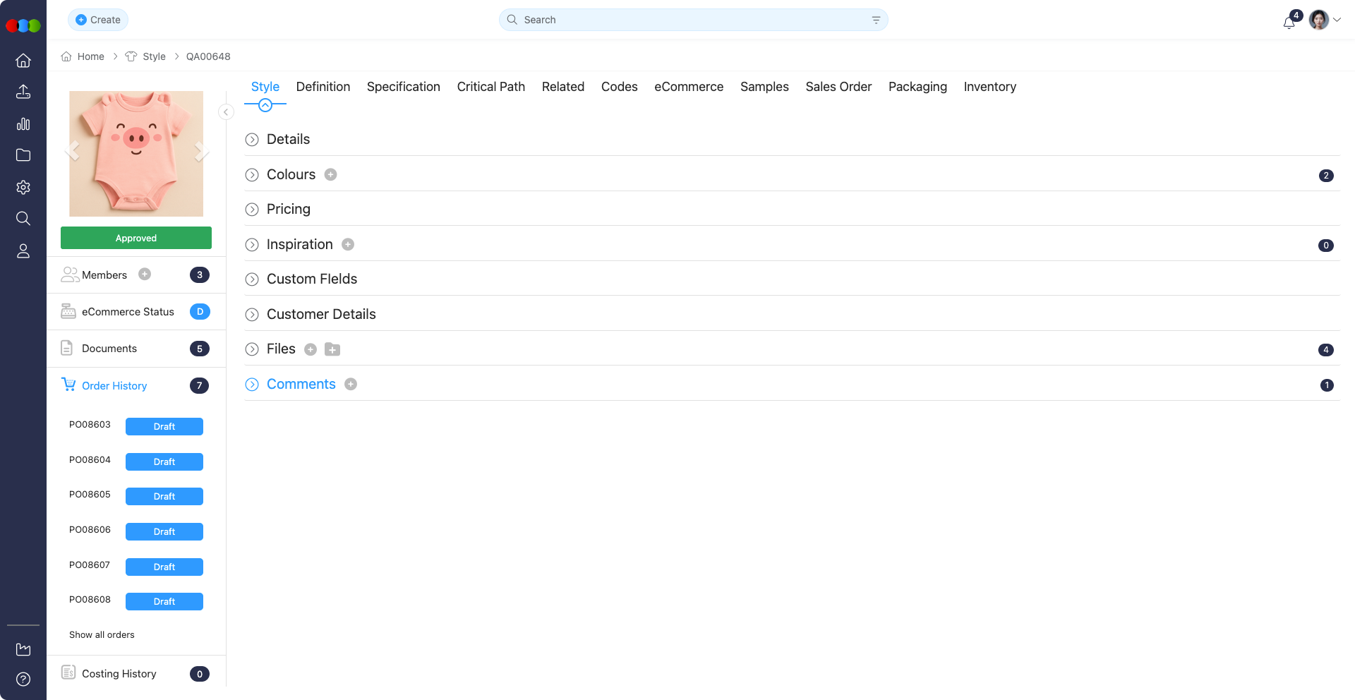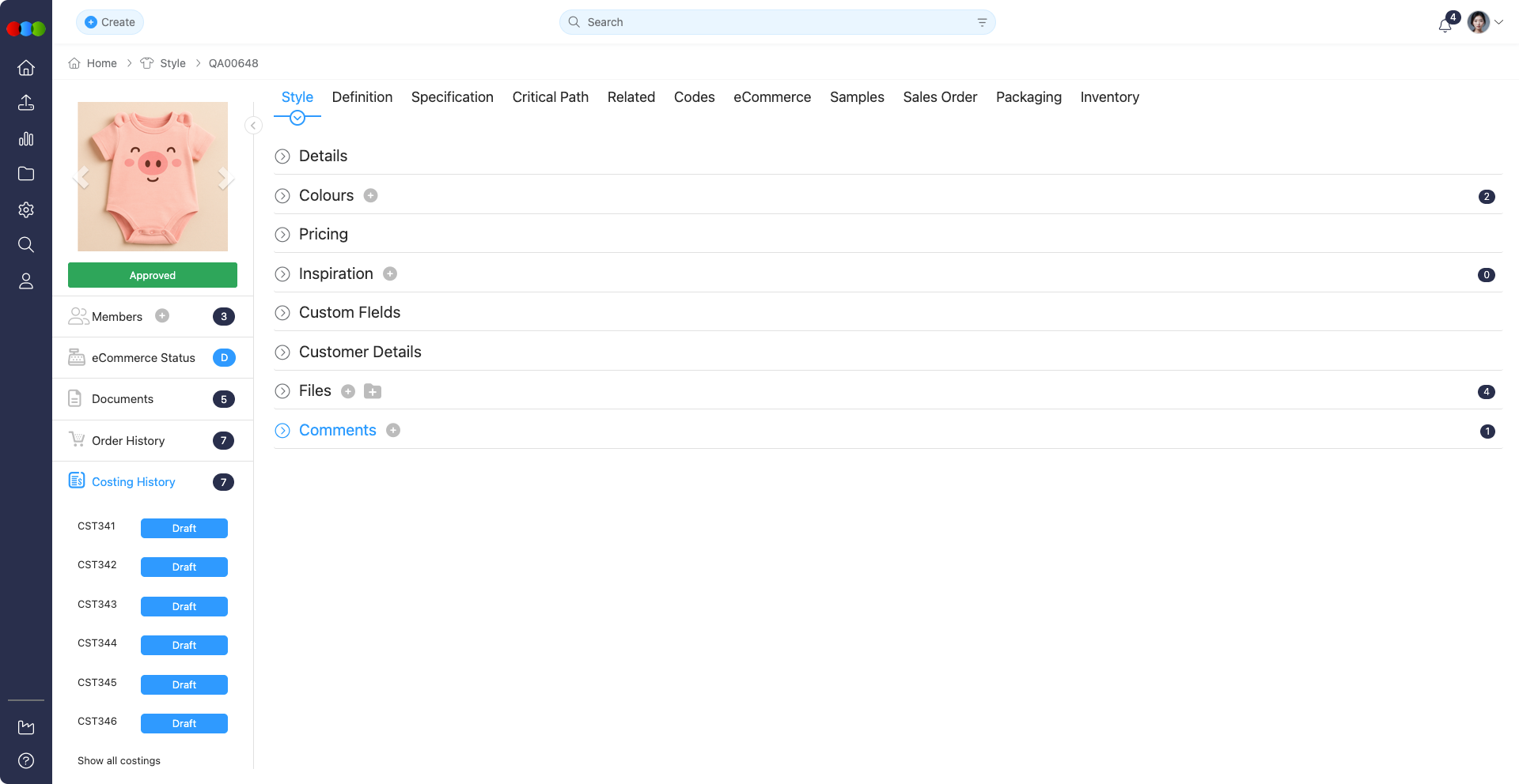 - When a Style has more than 7 Orders or Costings, a "Show All" button is now navigated to the following: