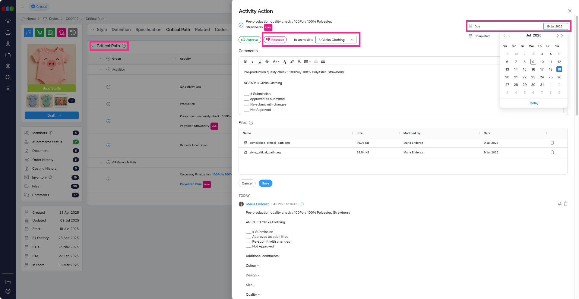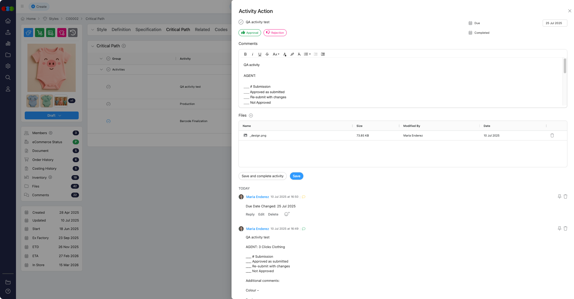 - Rejection Handling: When an activity is marked as "Rejection," the Responsibility field now appears, with Agent (if available)/Factory dropdown list.
