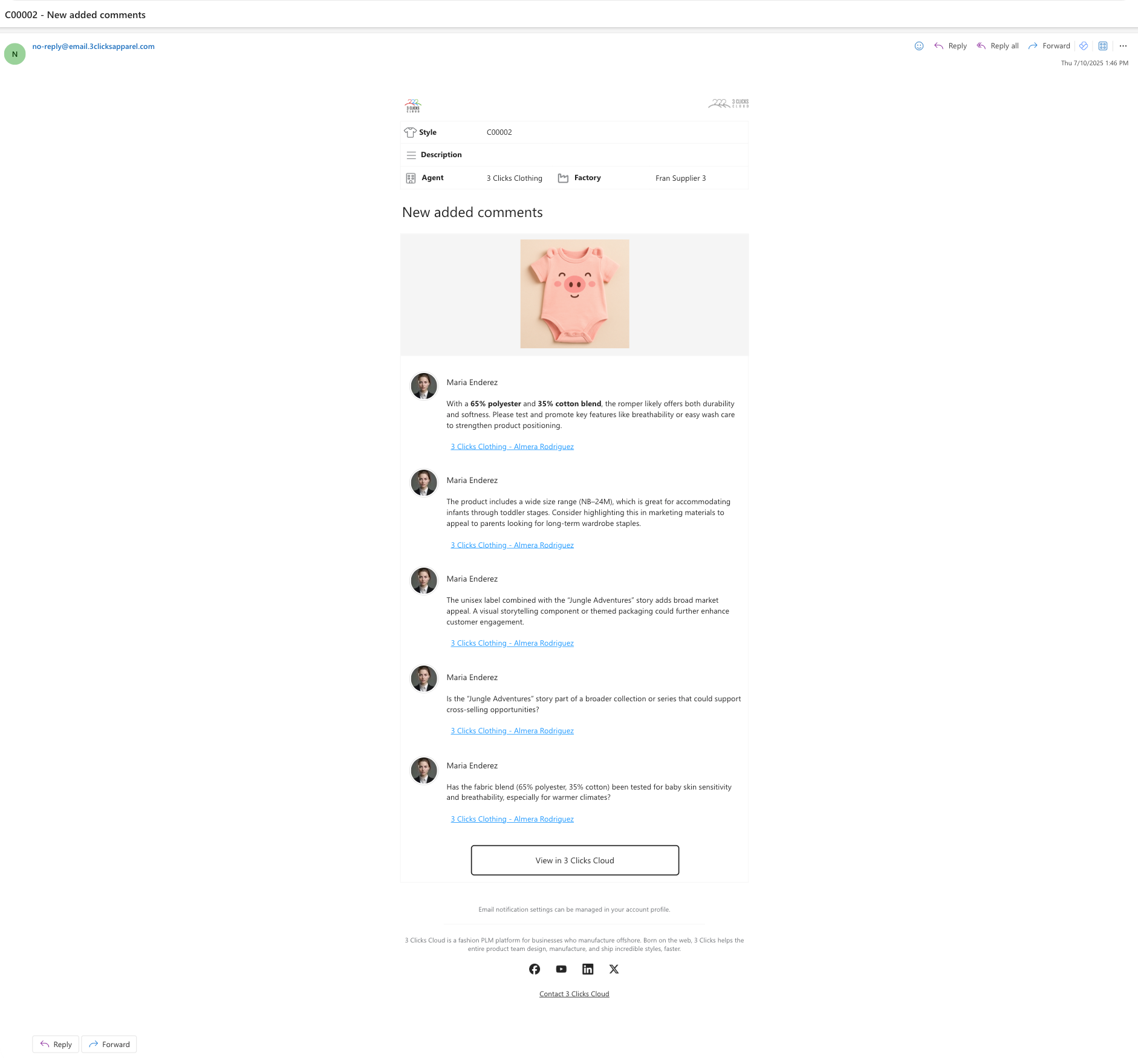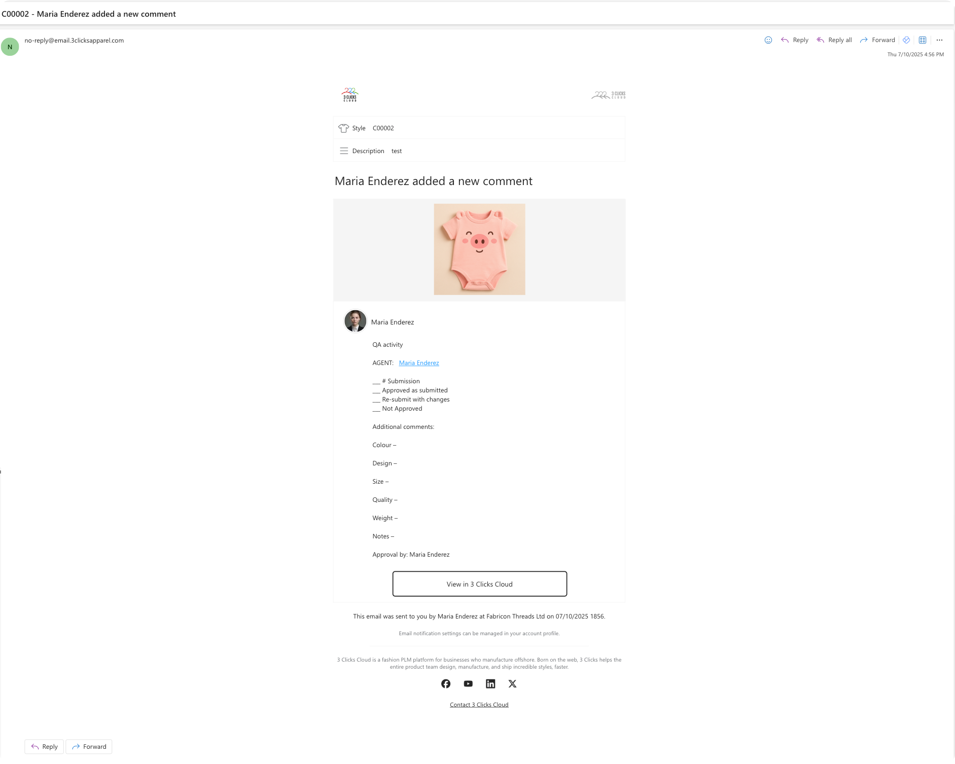- When a comment has a file attached, such file can be downloaded directly from the email.