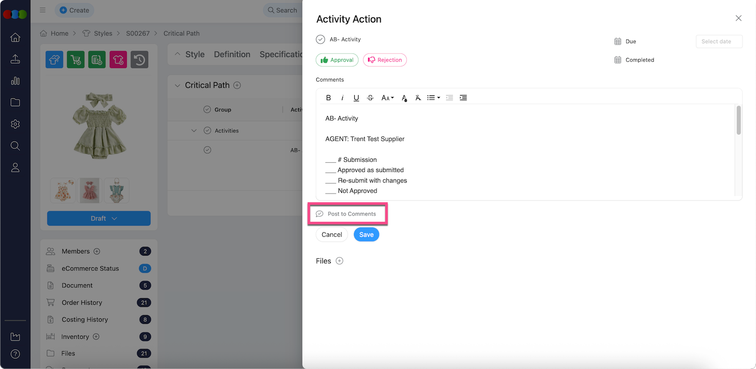 We've removed Post to Comments action in the Comments of Action Activity pop-up.
