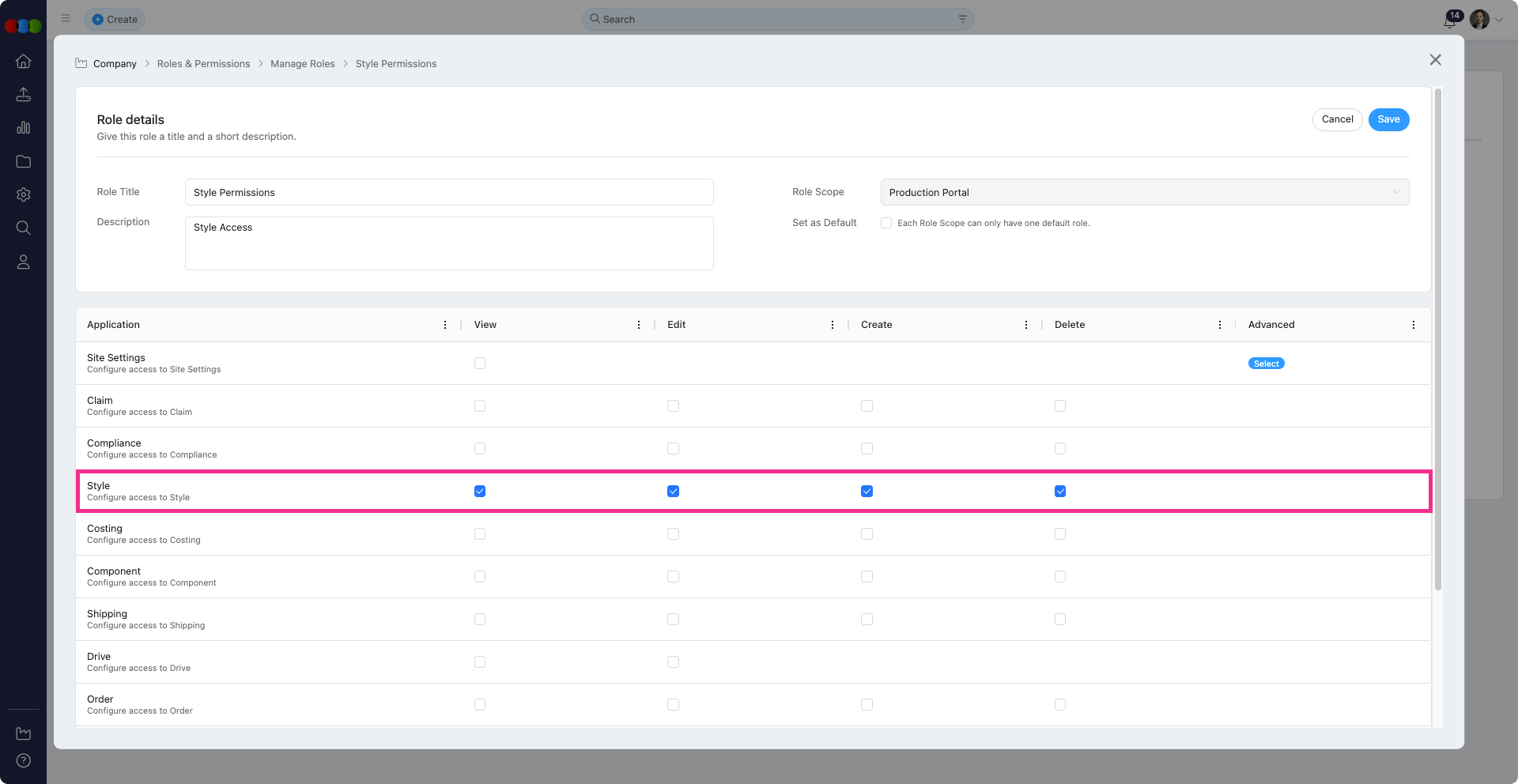 Roles & Permissions > Style Permissions