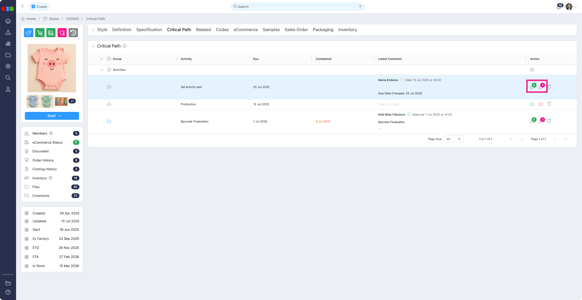 Style > Critical Path > Action > Comment