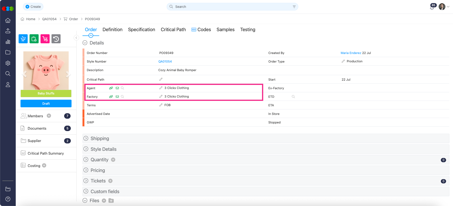 Previously, when creating a new order from an existing Costing item, the Agent and Factory fields were not carried over to the new order.