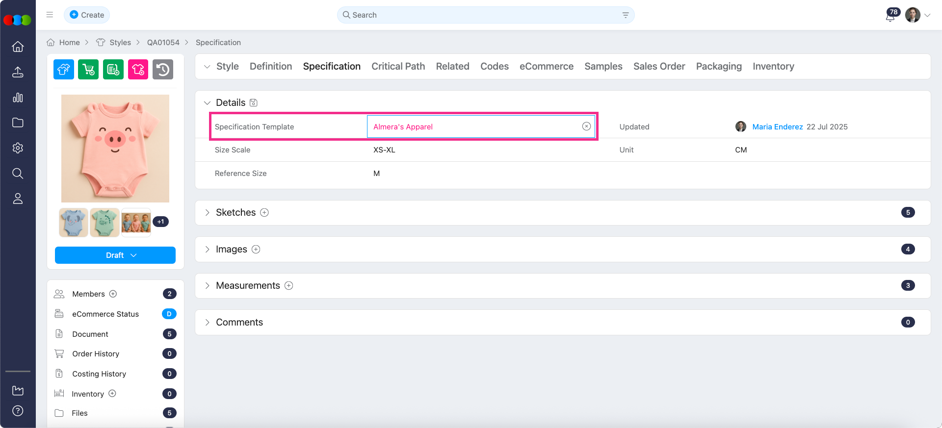Now, the disabled Spec Template name remains visible in Style > Specifications, shown in red text for easy identification.