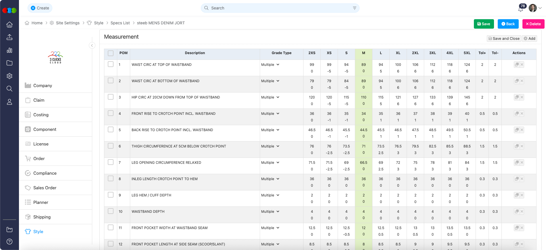 Site Settings > Style > Spec Template > Measurement