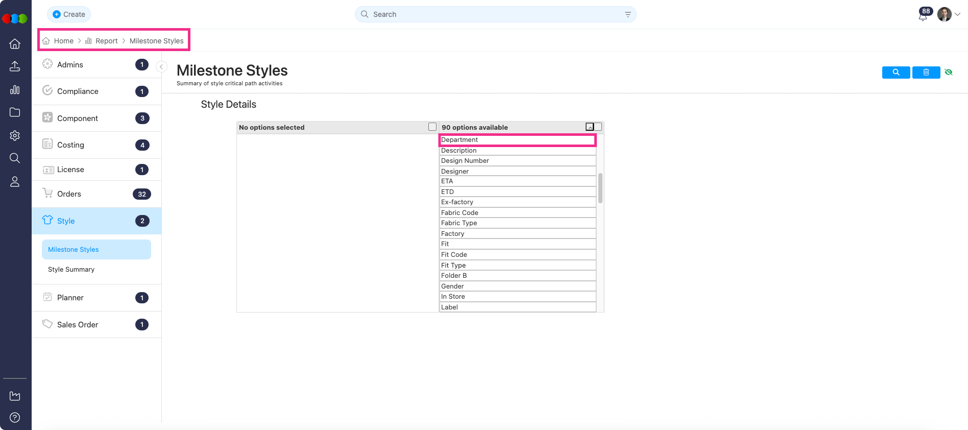 We have added the Department option in the Style Details, ensuring consistent views and improvement for style milestone management.