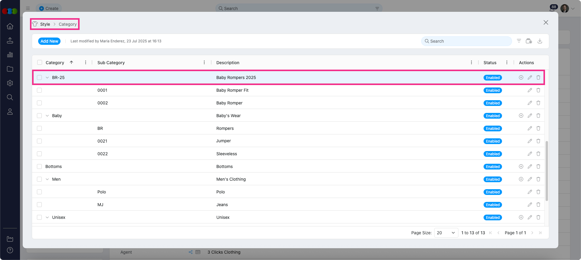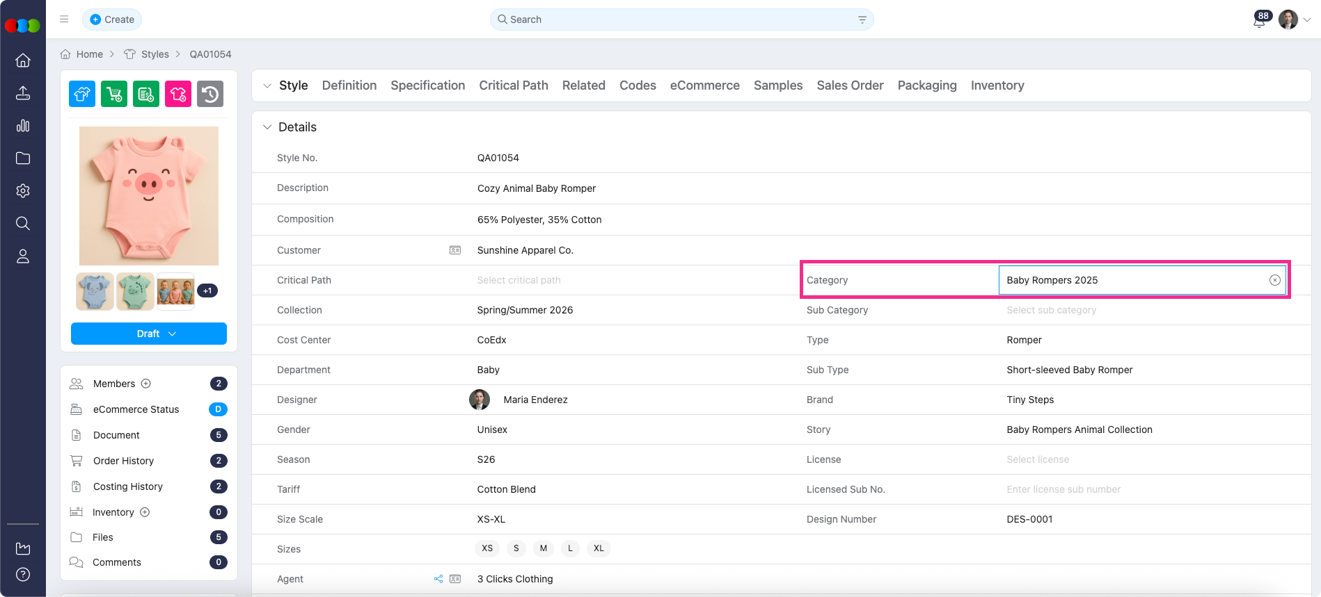 Style > Details > Category