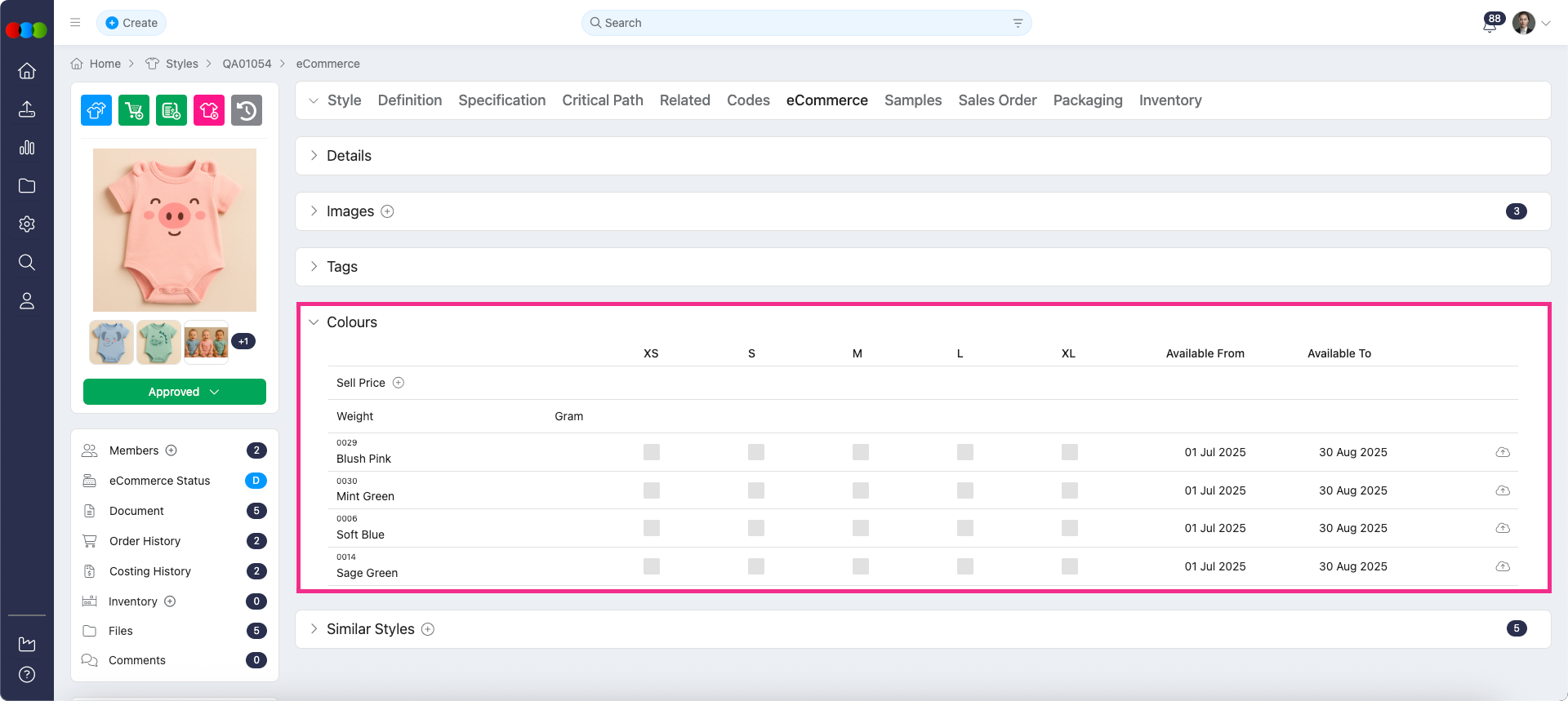 The Colours section in the eCommerce tab now expands by default when colours are added in the main Style tab, making it easier to view and manage colour details.