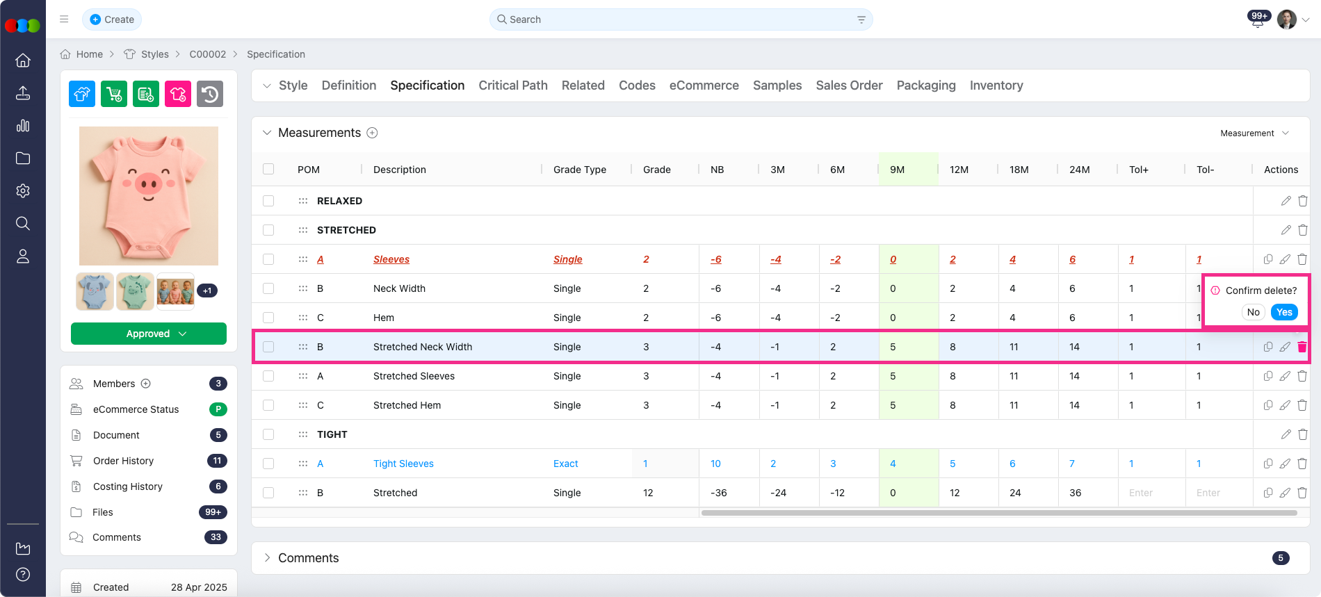 Style > Specifications > Measurements