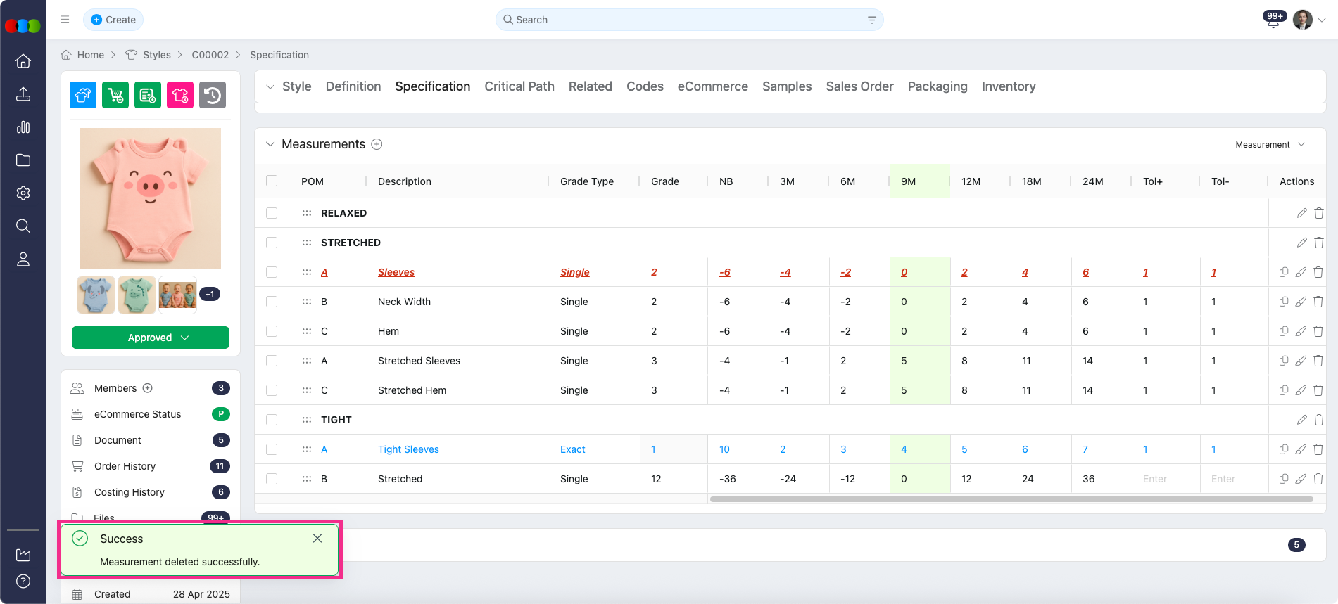 Style Milestone Report > Style Details