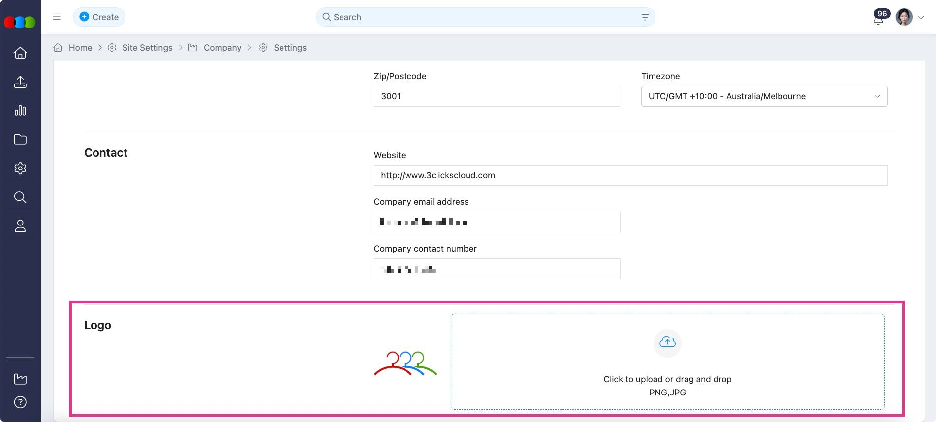 Site Settings > Company > Logo