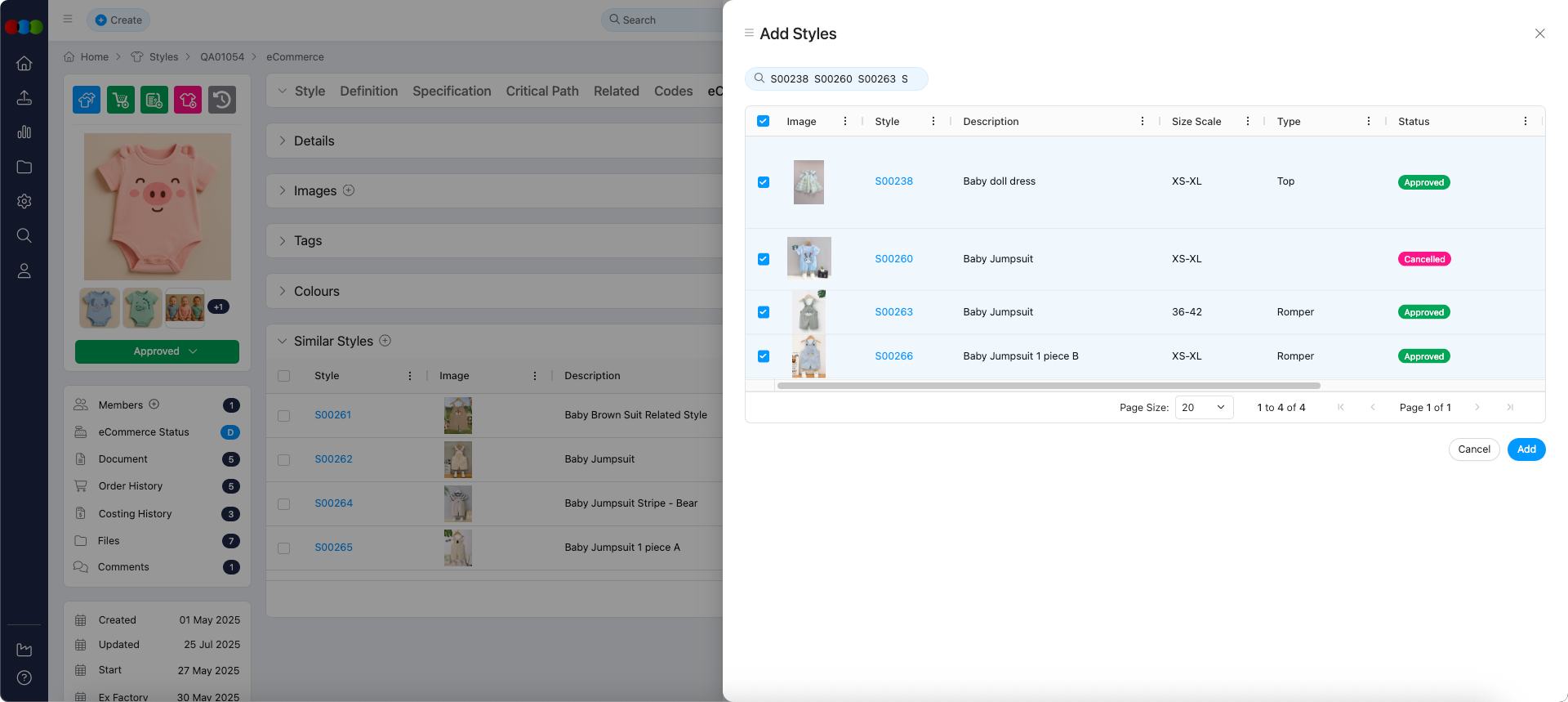 Now, you can search and select multiple orders/styles/components. The search bar supports selecting multiple items in a single search.