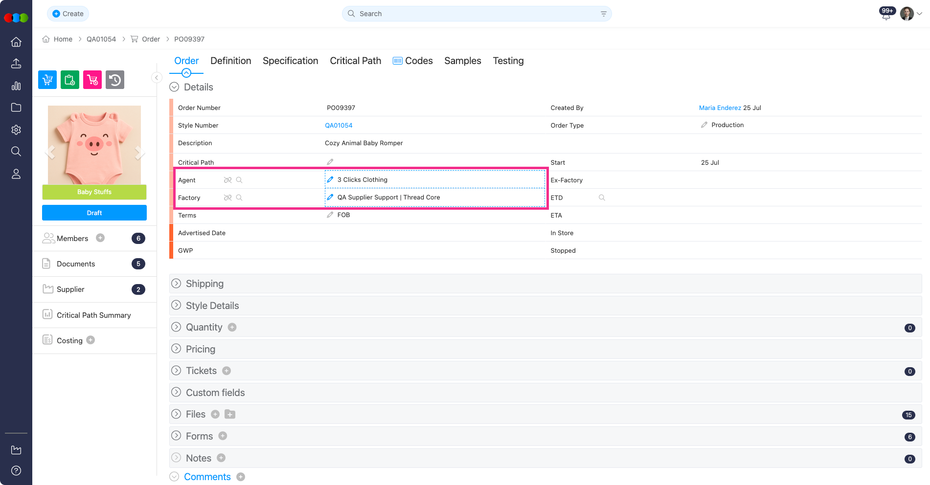 We've fixed an issue where the Agent / Factory details were not being copied from a Style to a new Order if the fields were not set as mandatory in Site Settings.