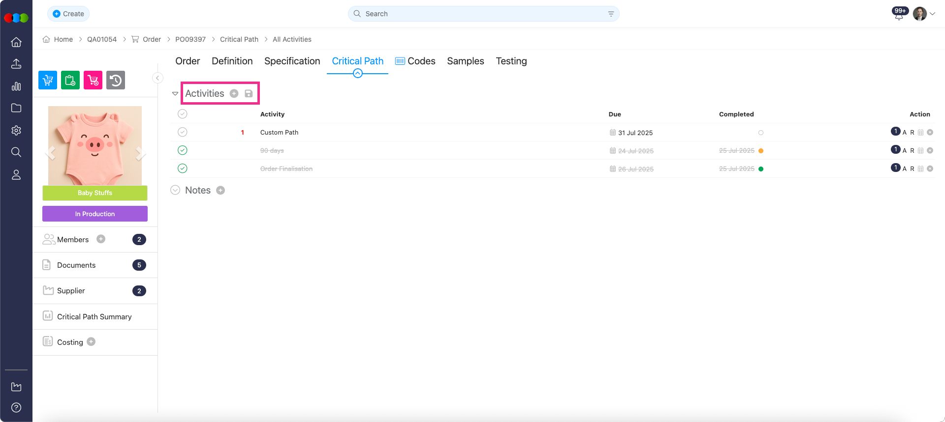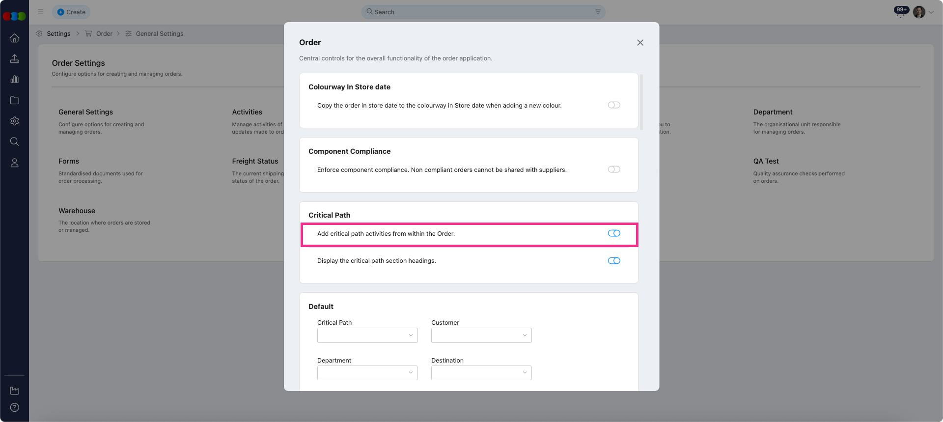 To enhance process control, we've introduced a new setting for managing Critical Path activities within Orders.