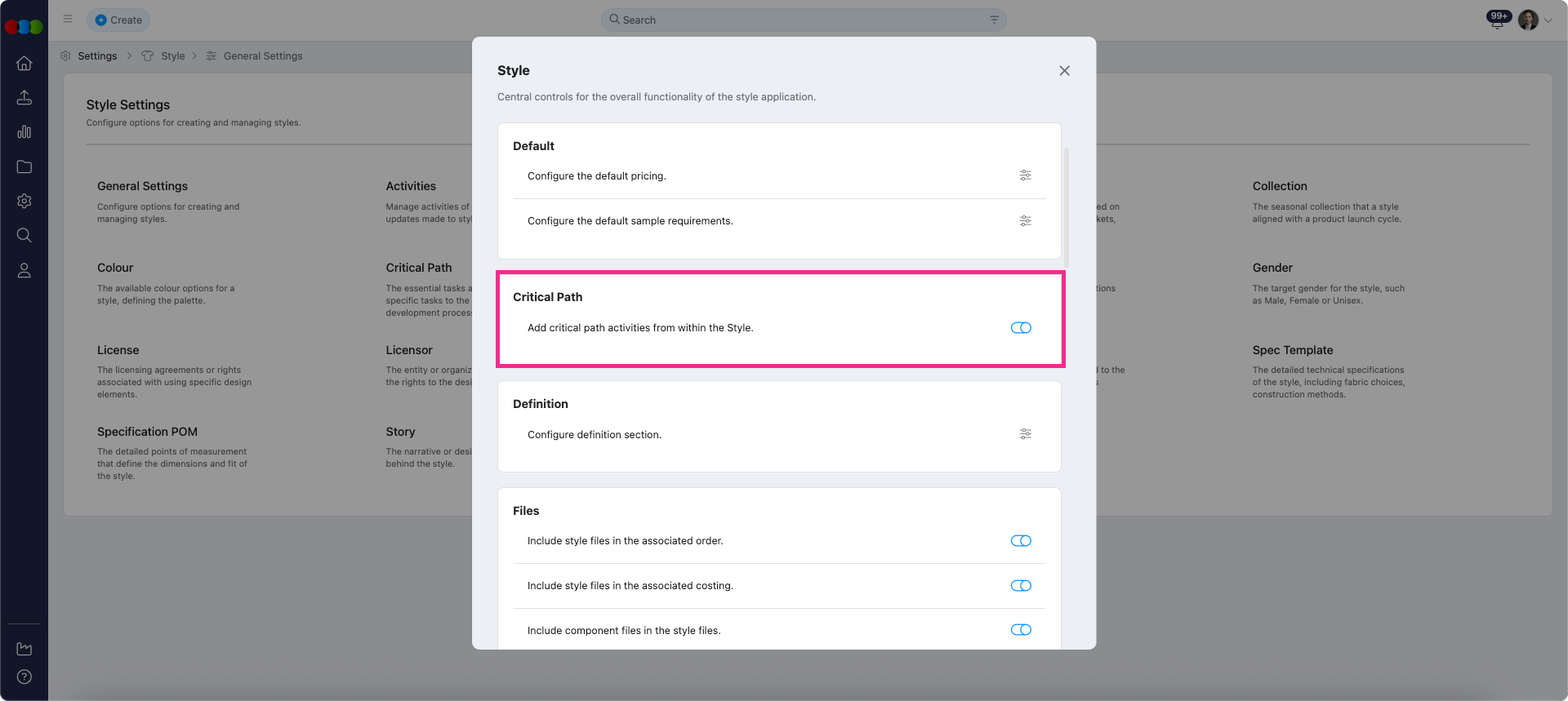 - When ON (default): You can add directly in the Style's Critical Path section.
