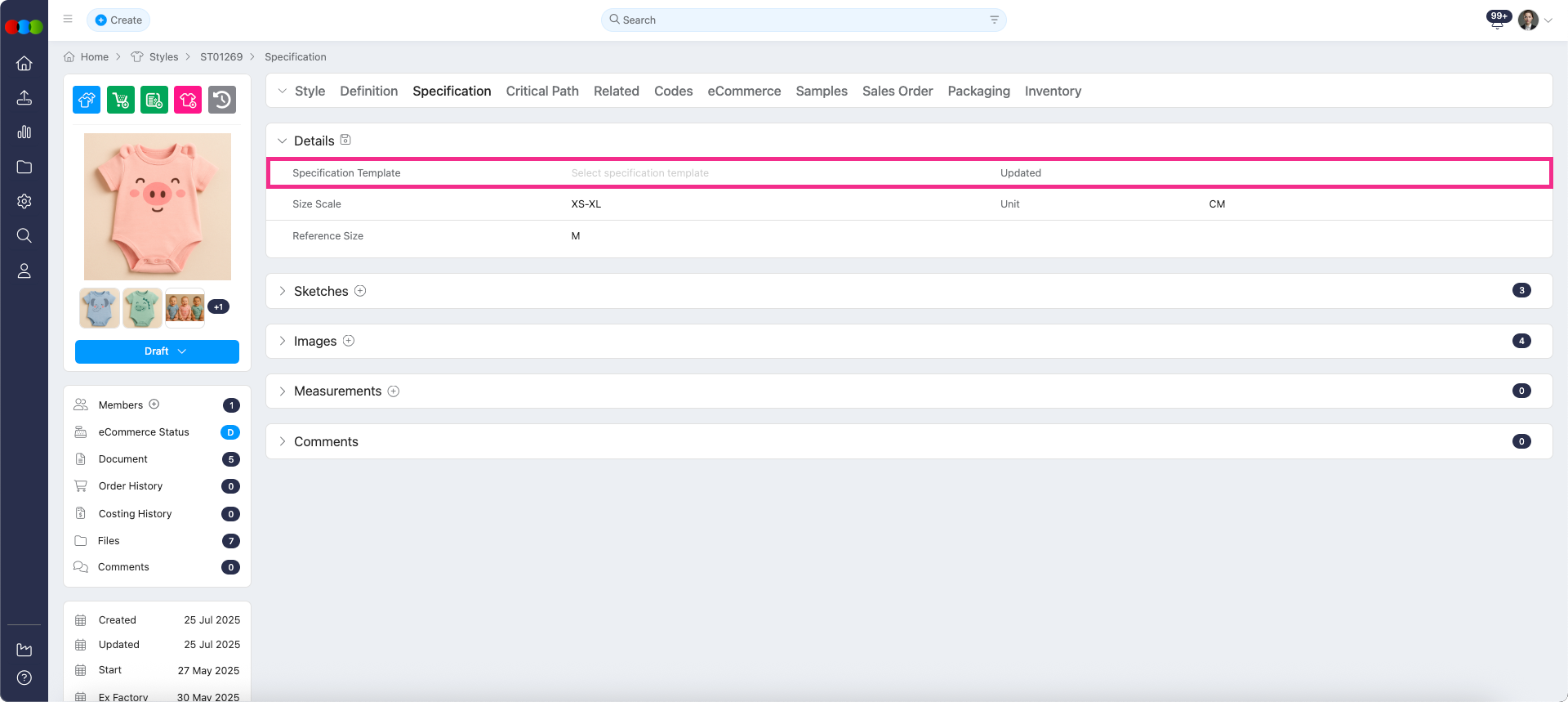 Style > Specifications > Details