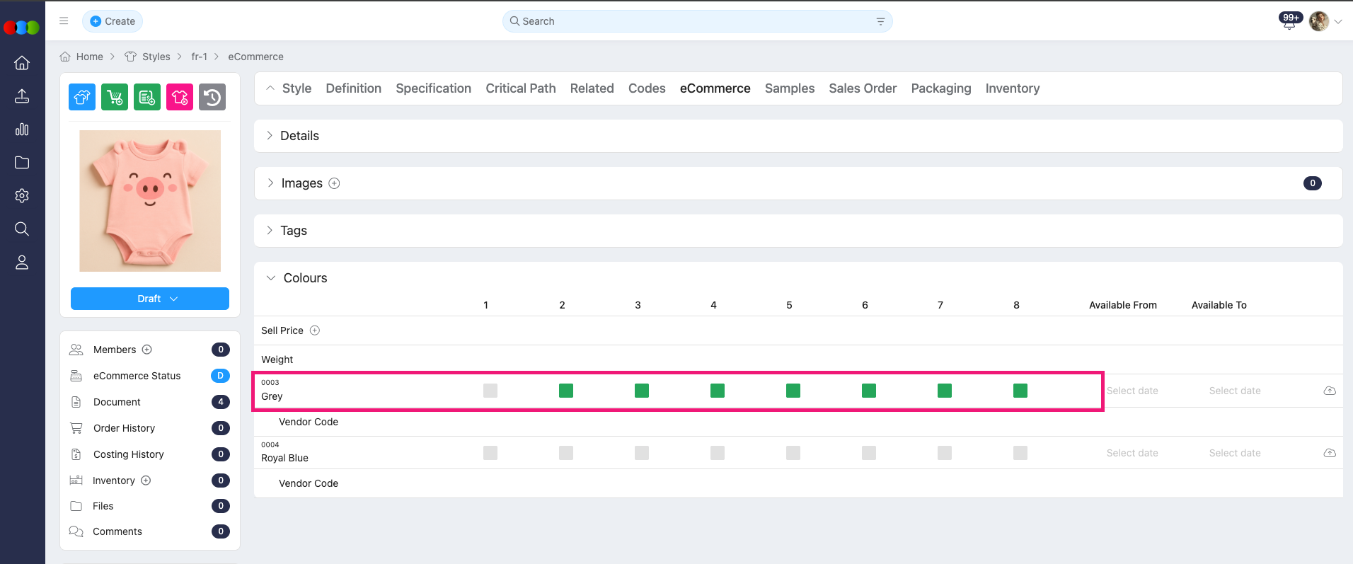 - Previously, when you imported only the eCommerce Size Enabled field, the size selections in the eCommerce tab's Colour section didn't update as expected.
