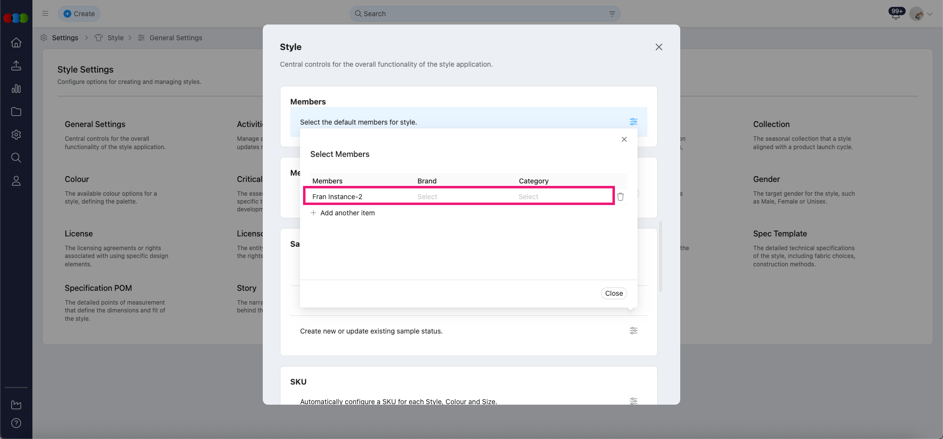 - Now, when creating a new Style, the Style creator and default members with blank Brand and Category are automatically assigned.