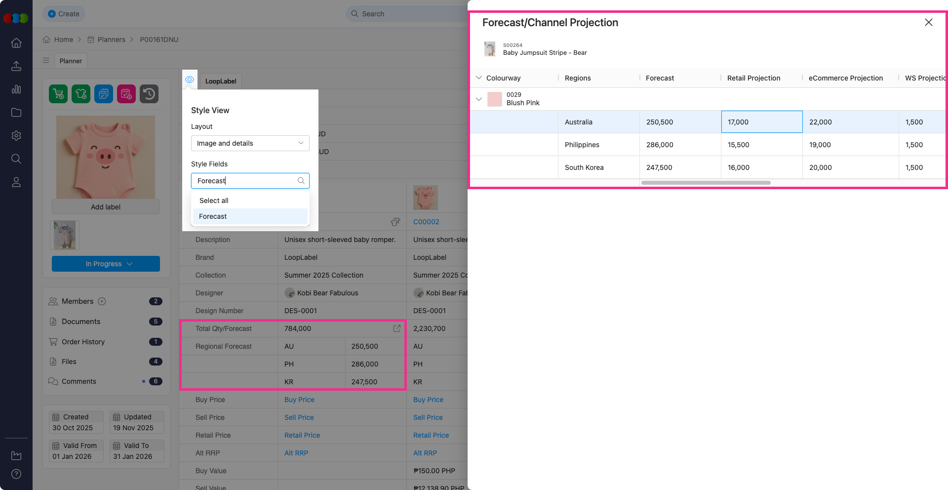 We’ve added Forecast and Channel Projection within the Planner, making it easier and more intuitive to use when planning your styles.