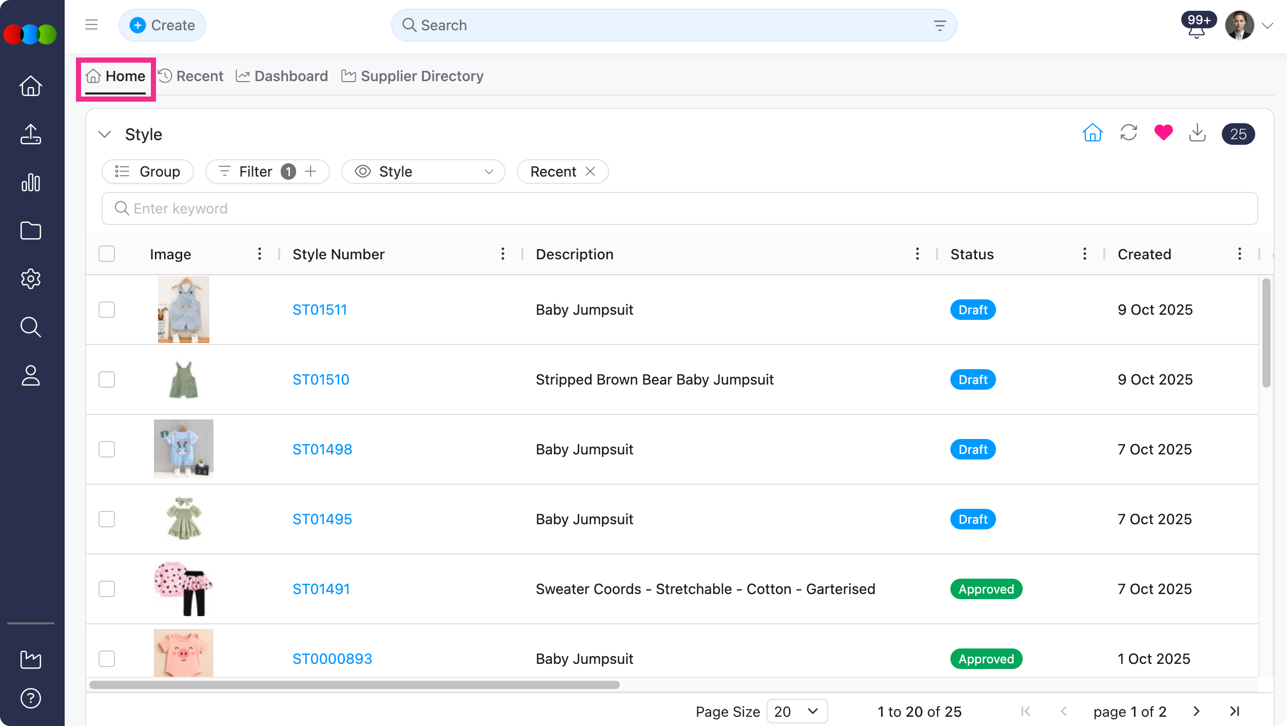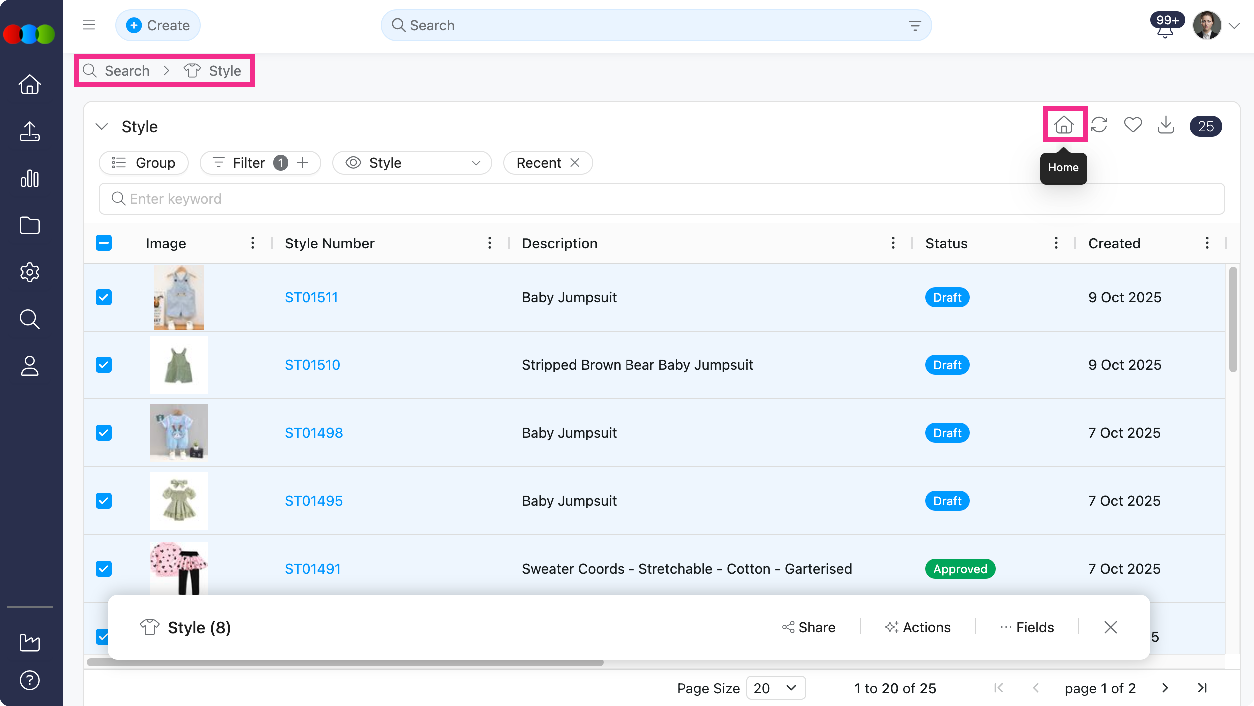 You can now designate one Favourite Search in Style Search as your Home page. This becomes your default display when clicking the Home icon.