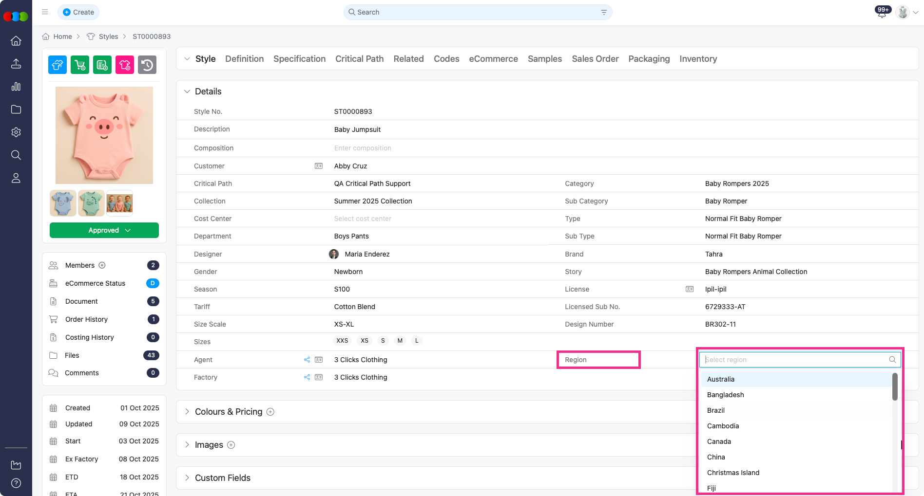 You can choose from the Region dropdown your Style's region.