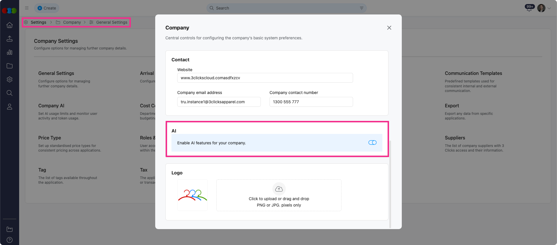Company > General Settings > AI