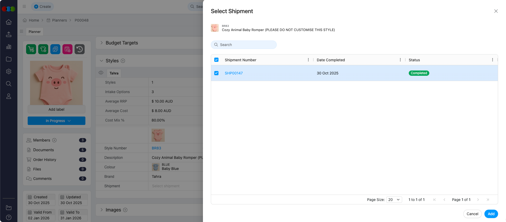 Once assigned, related styles belonging to the same shipment will be automatically populated—saving you time and ensuring consistency.