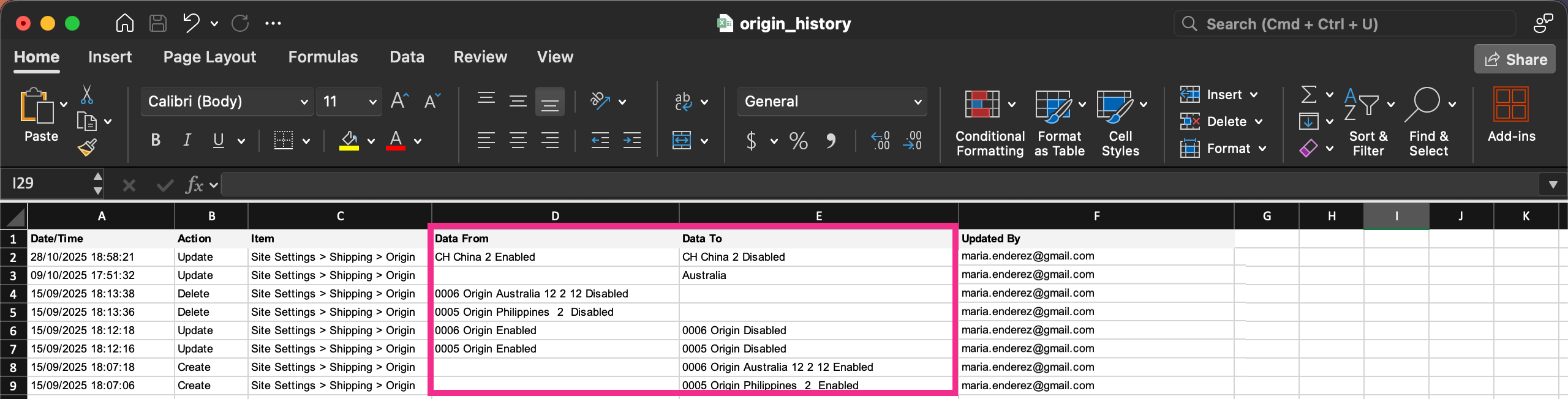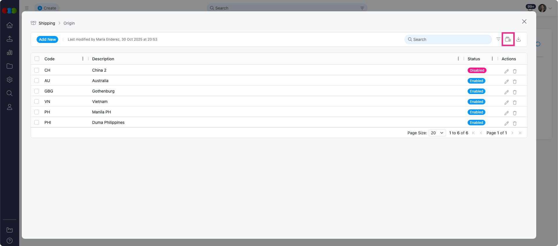 We've updated the history logging so that every enable/disable action now records the changes with item's code and description, alongside the status change, timestamp, and user.