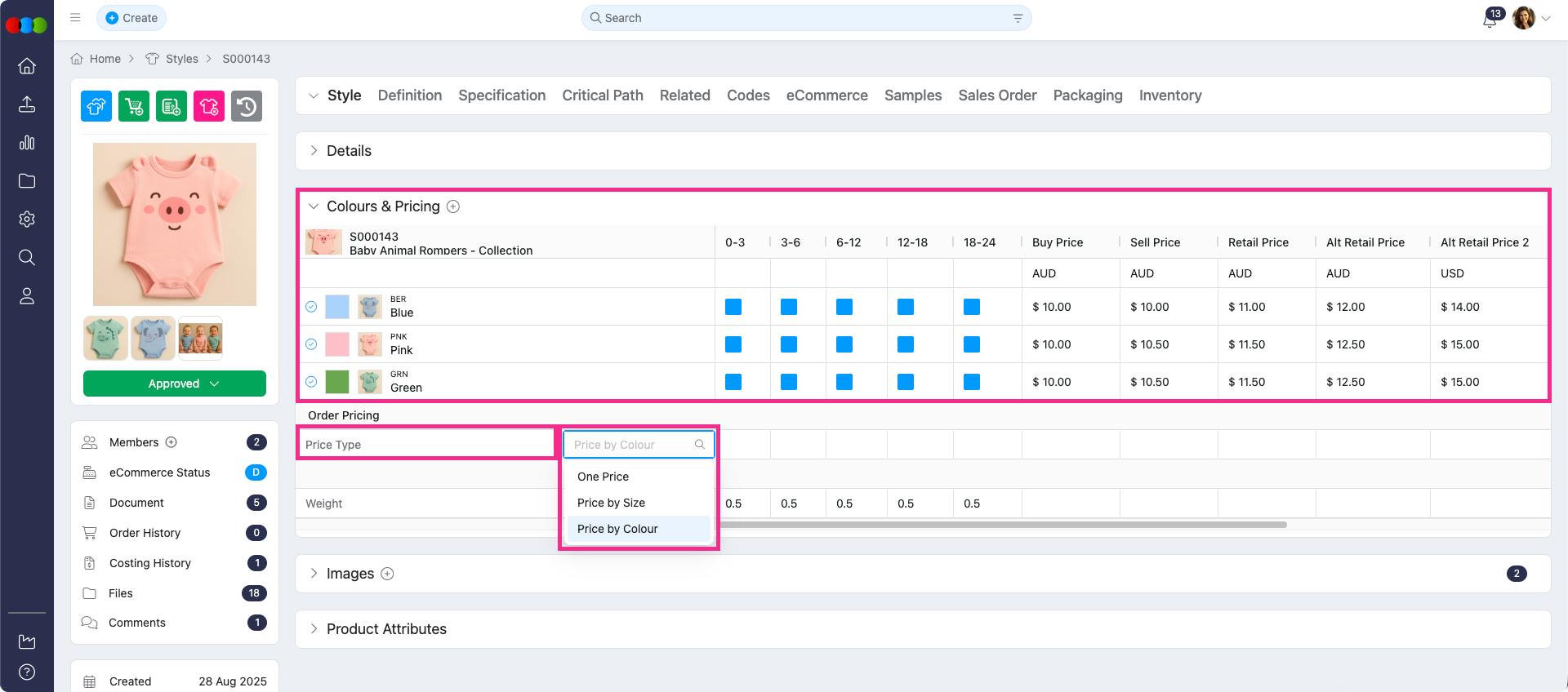 - Style Price Types: Sell, Buy, RRP, Alt RRP, Alt RRP 2