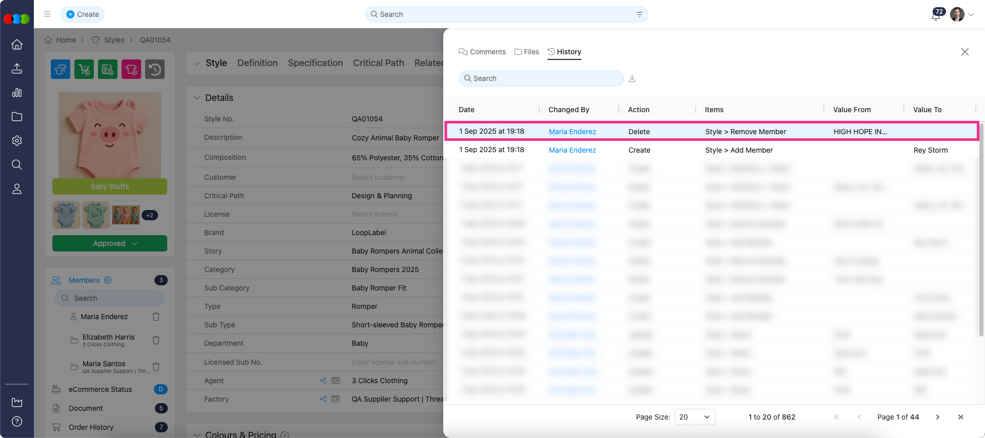 Style > History > Removed Supplier