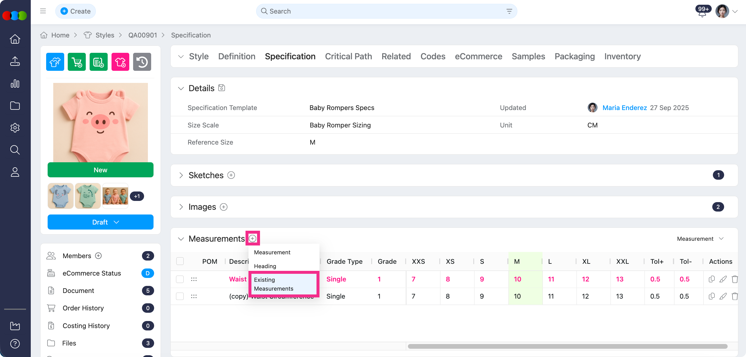 Now, you can pull in measurements from any existing specification template directly into the style, reducing duplication and saving time.
