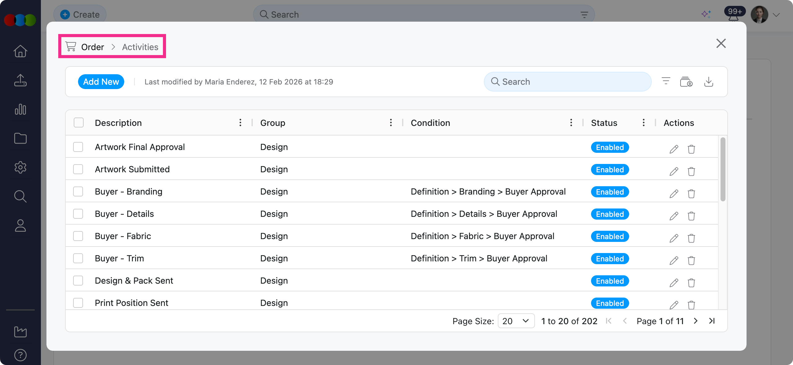 We've enhanced the visual display of Site Settings > Order > Activities to provide a more intuitive and modern interface for managing your order workflow.